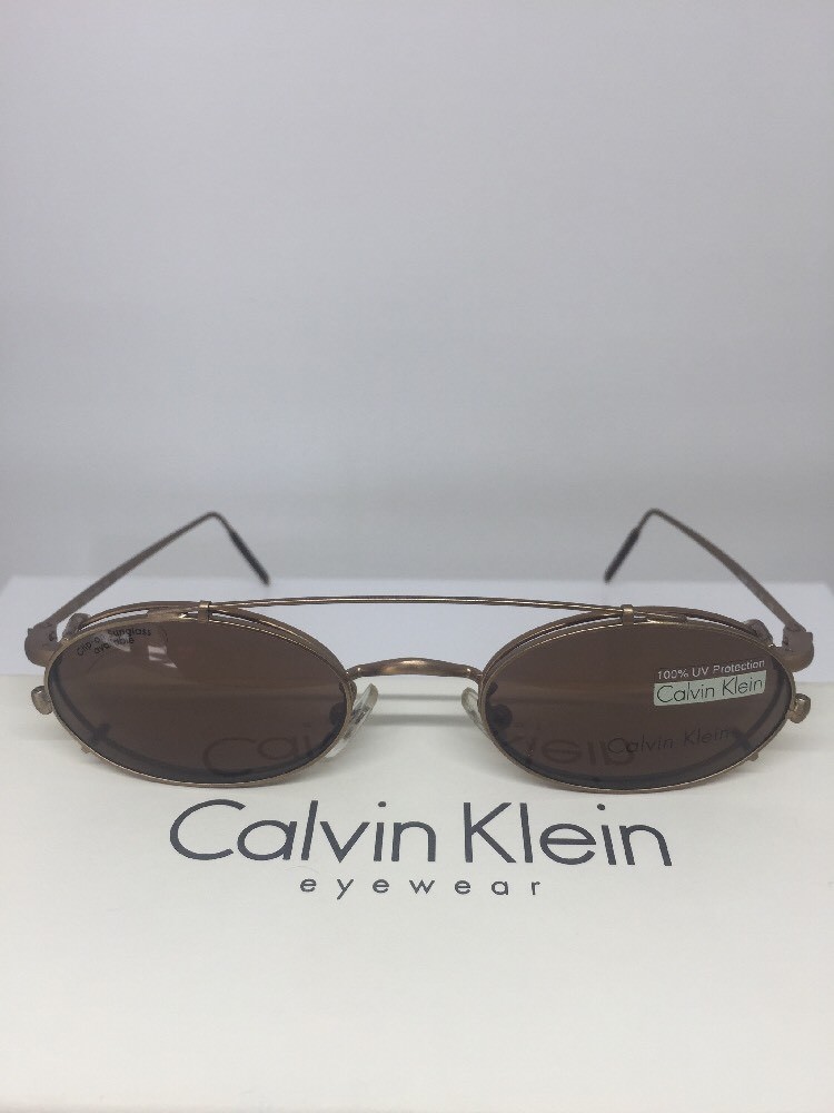 New VINTAGE CALVIN KLEIN Eyeglasses CK 149 C. 570 Satin Gold With Sun Clip On