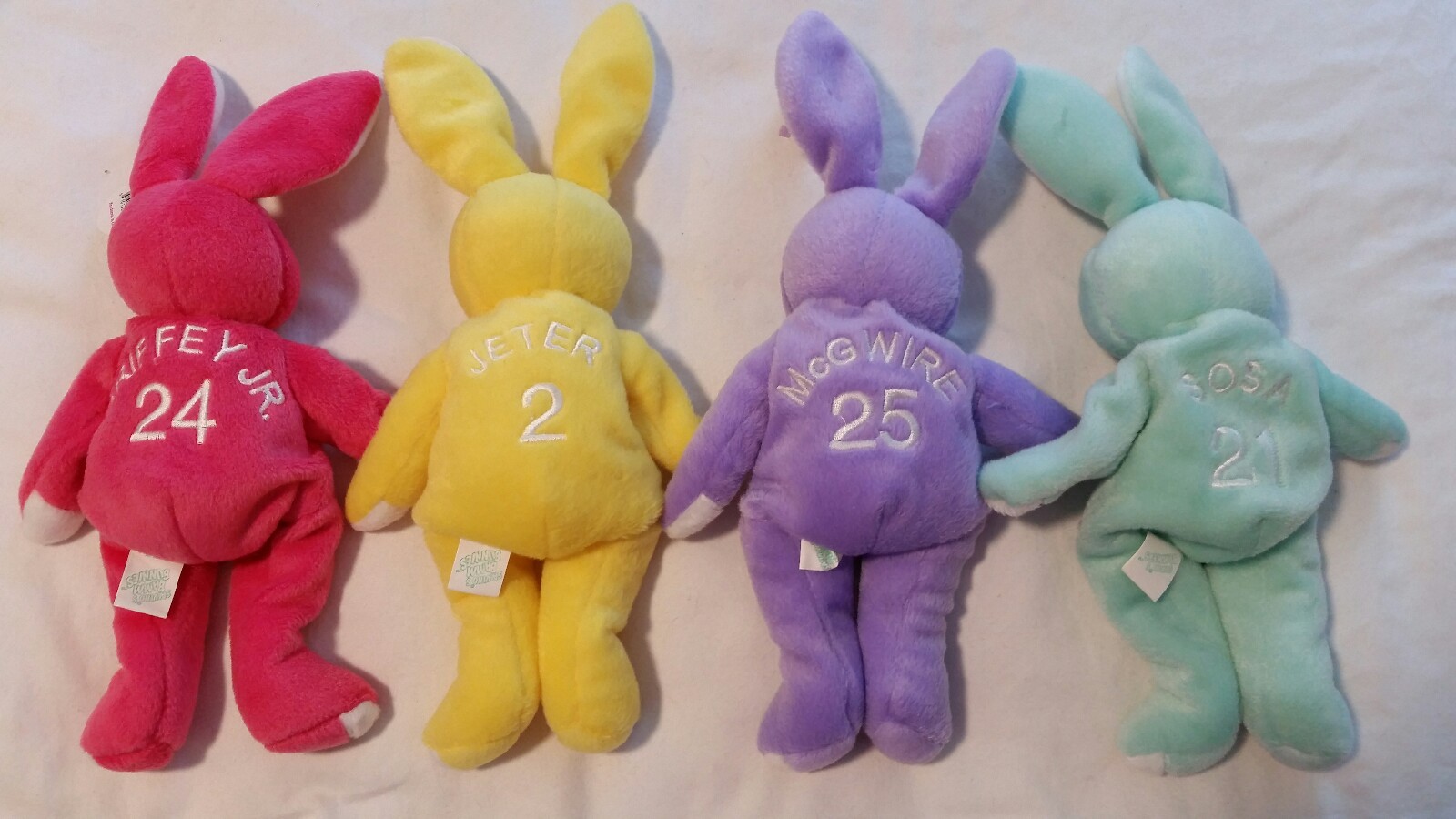 как выглядит Set of 4 Salvinos Bamm BUNNIES - Jeter, McGwire, Sosa, Griffey Jr 1999 NWT фото