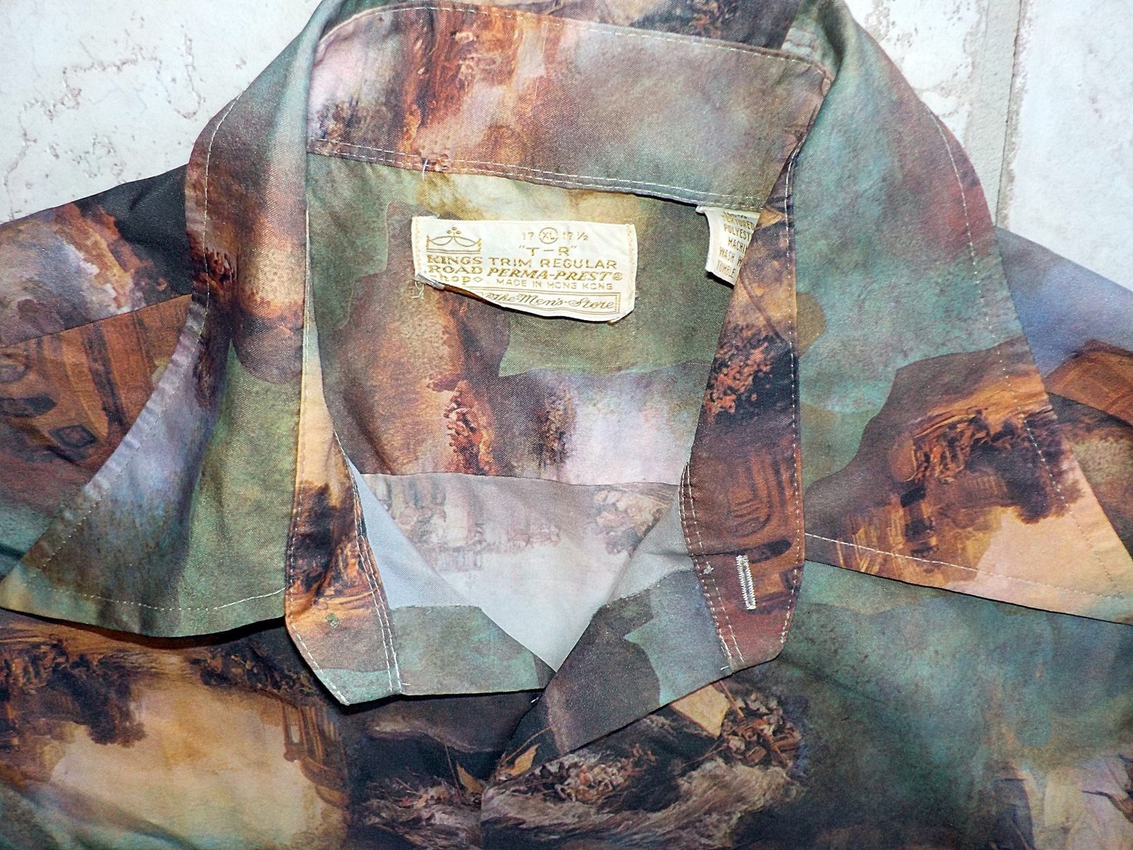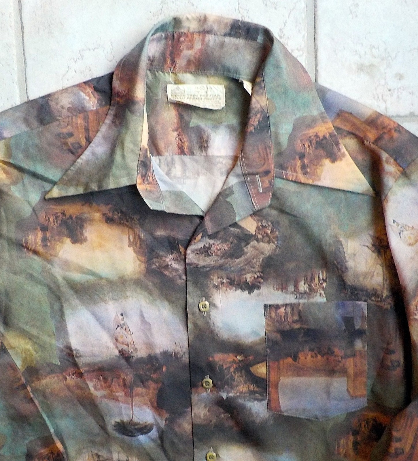 как выглядит VTG 60s SEARS Kings Road Scenic Print Mod Disco Shirt Great Vintage RARE Brown фото