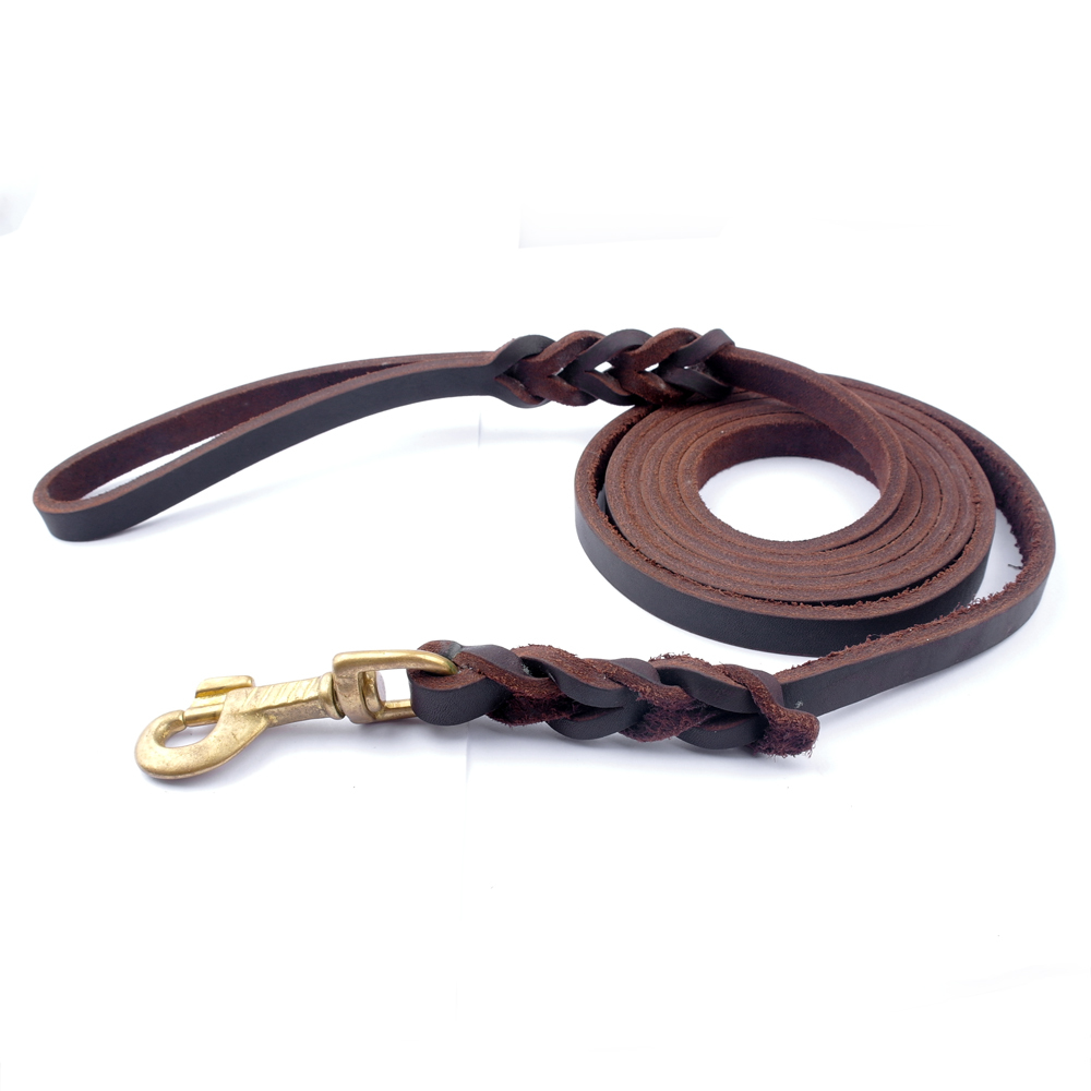 Genuine Leather Dog Leash Soft Braided Small Large Durable Dogs Training Lead