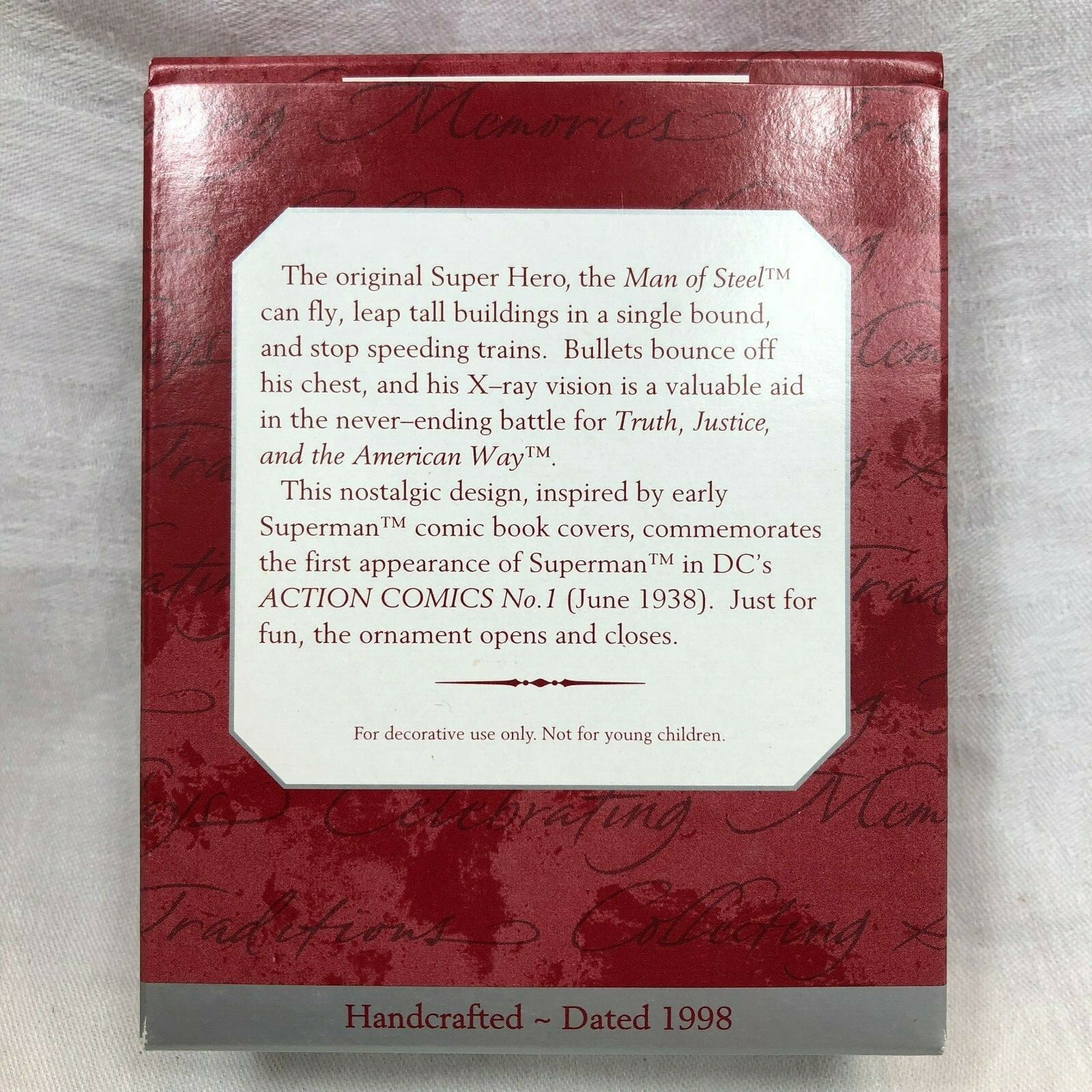 • Hallmark Keepsake 1998 Superman Tin Lunch Box DC's Action Comic 1 Ornament NIB