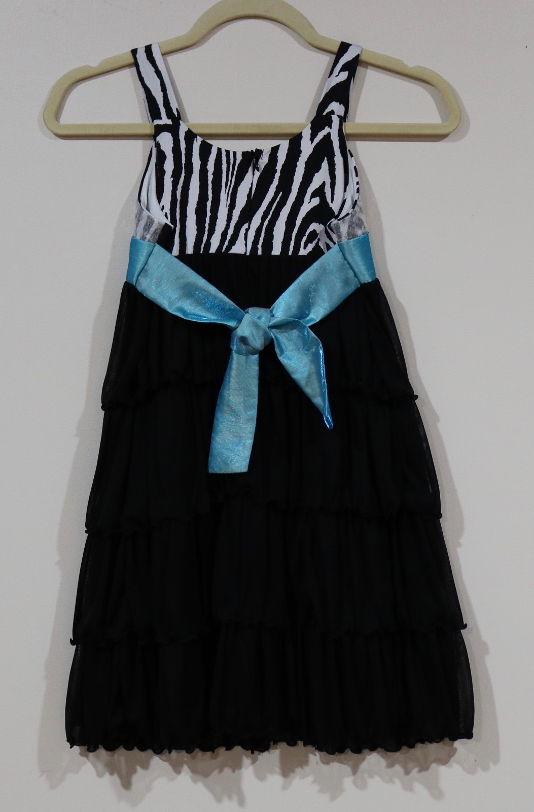 Bonnie Jean Girls Size 10 Black White Blue Sash Sequin Ruffled Layers Dress