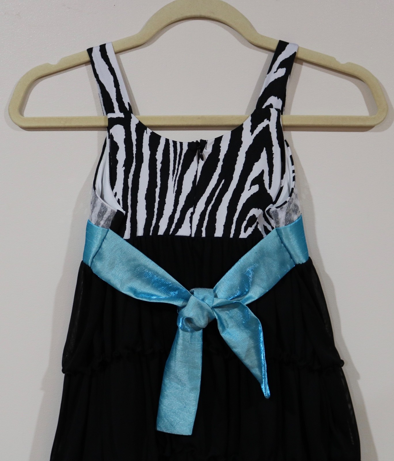 как выглядит Bonnie Jean Girls Size 10 Black White Blue Sash Sequin Ruffled Layers Dress фото