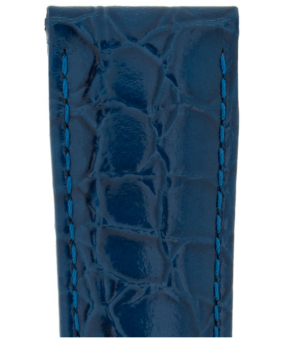 16MM Hirsch CROCOGRAIN Crocodile Embossed Leather Watch Strap in Blue Medium