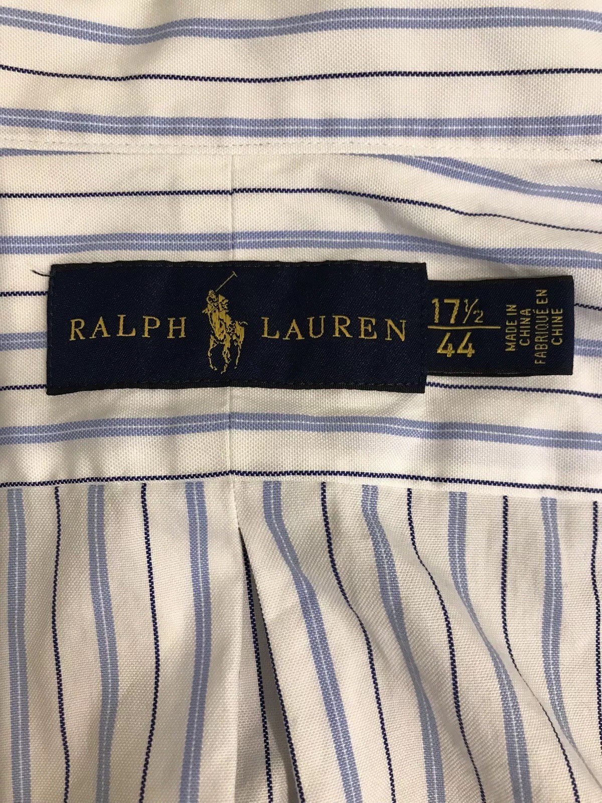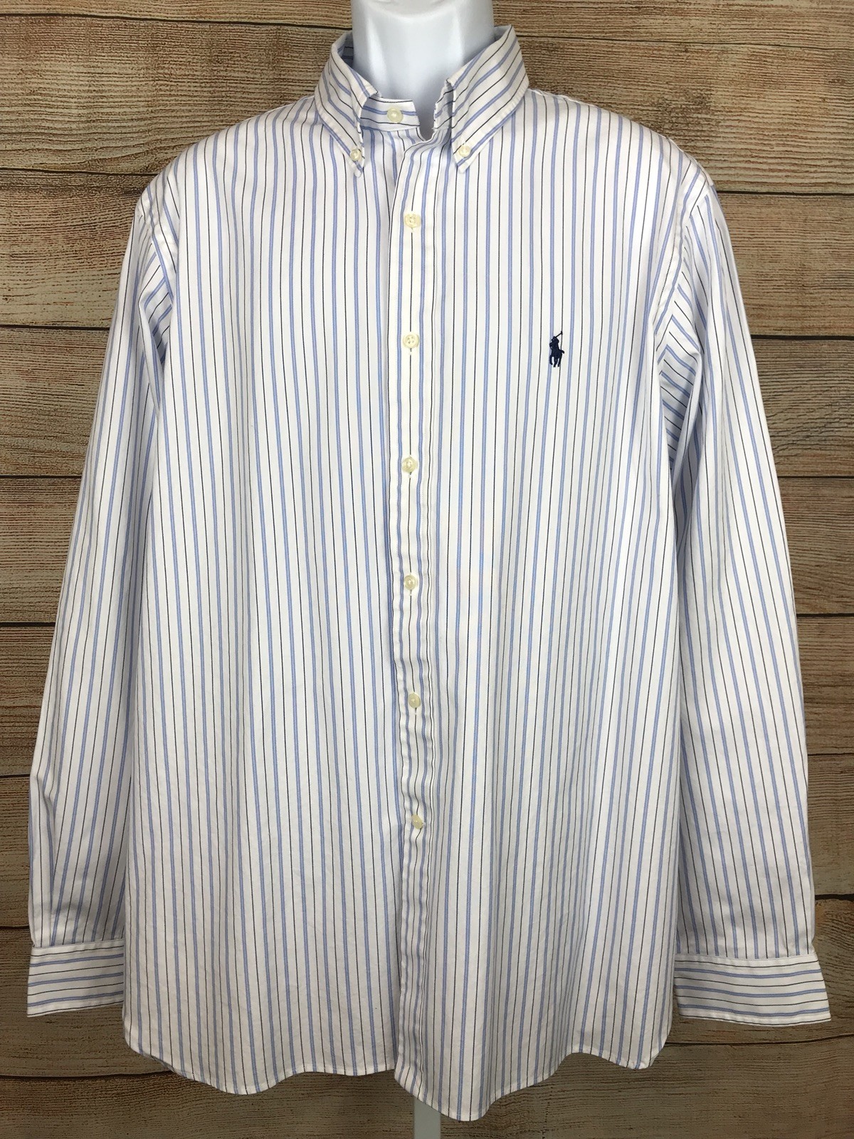 как выглядит Ralph Lauren Men s White Blue Striped Long Sleeve Dress Shirt 17 1/2 44 фото