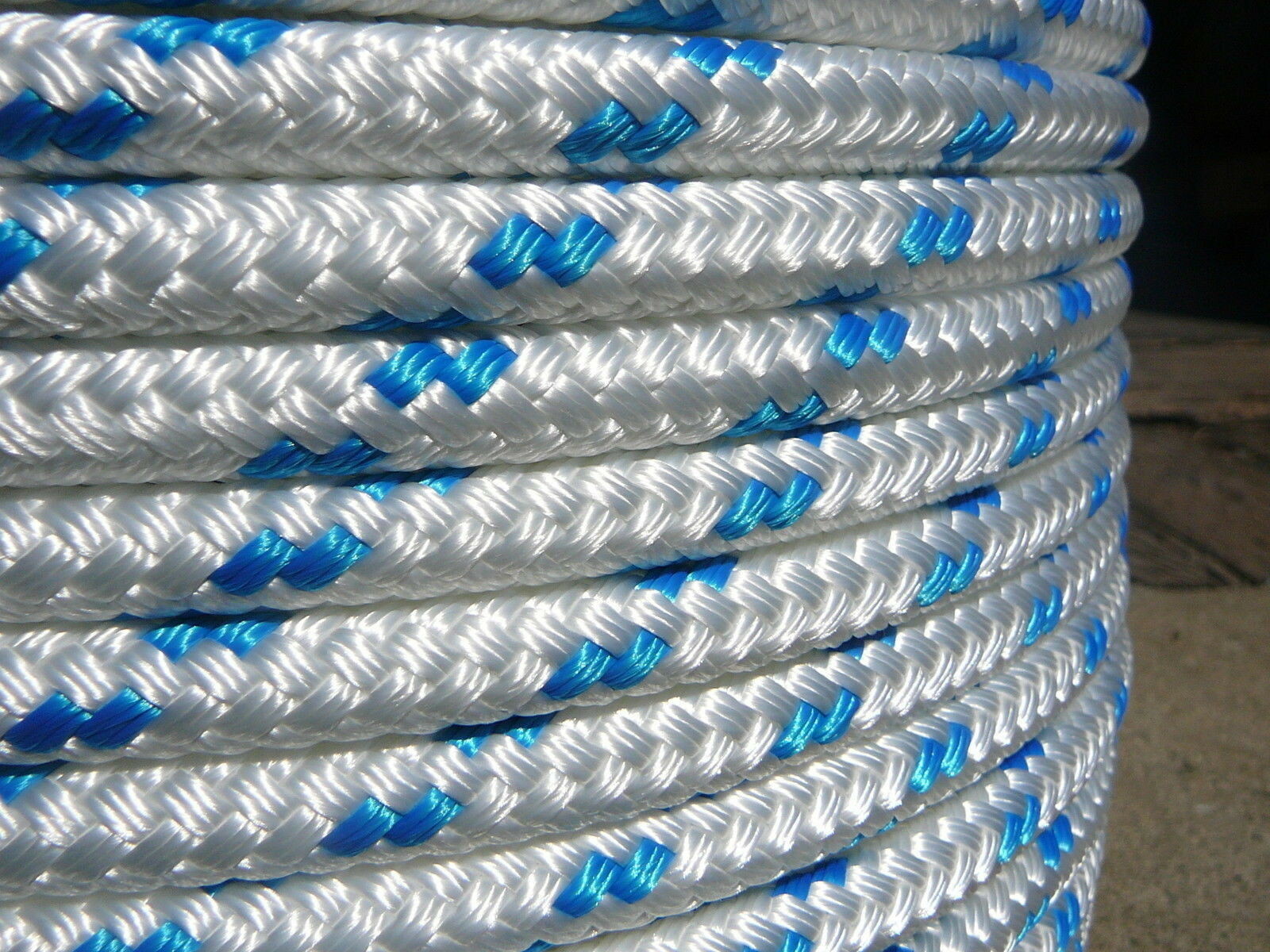 Sailboat Rigging Rope 7/16 x 150' White/Blue Double Braided Sheet Halyard Line