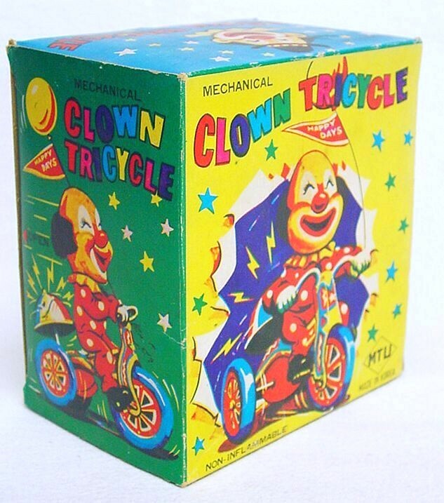 как выглядит MTU Korea CLOWN Character TRICYCLE MOTORCYCLE Wind-Up Tin Toy MIB 60 FABULOUS фото