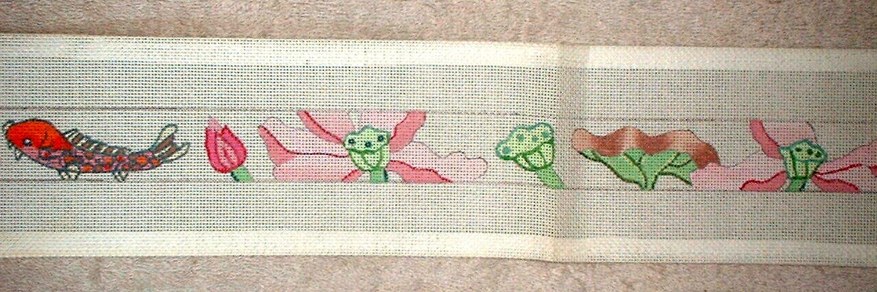 как выглядит MZC Oriental Koi Fish Lily Pads 18ct Mono HP Hand Painted Needlepoint Canvas фото