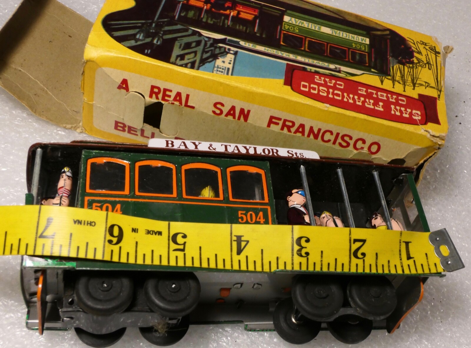 SAN FRANCISCO BELL RINGING CABLE CAR FRICTION TOY W/ BOX MADE IN JAPAN
