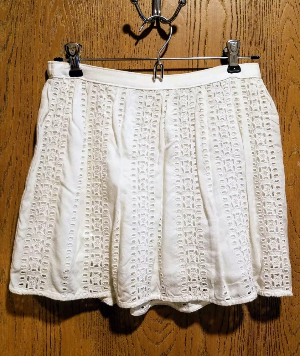 как выглядит ABERCROMBIE FITCH IRIDESCENT SEQUENED, LINED WHITE EYELET LACE MINI SKIRT XS фото