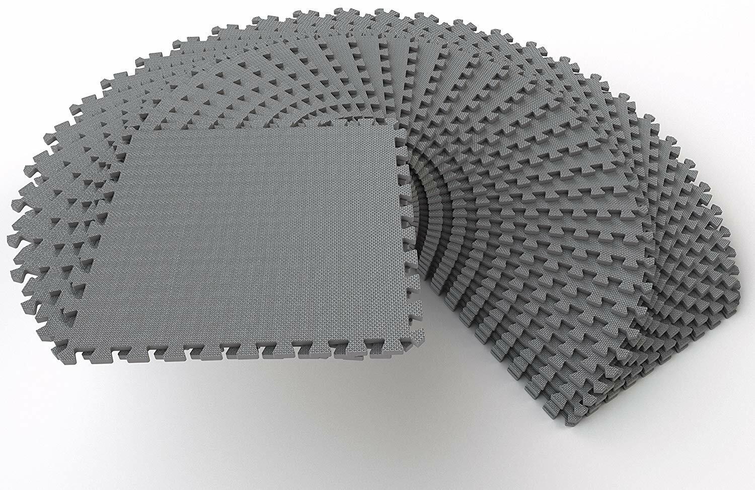 Interlocking Puzzle Mat Tumbling Gym Floor Grey Home Gymnastics 144 Sq Feet Pack