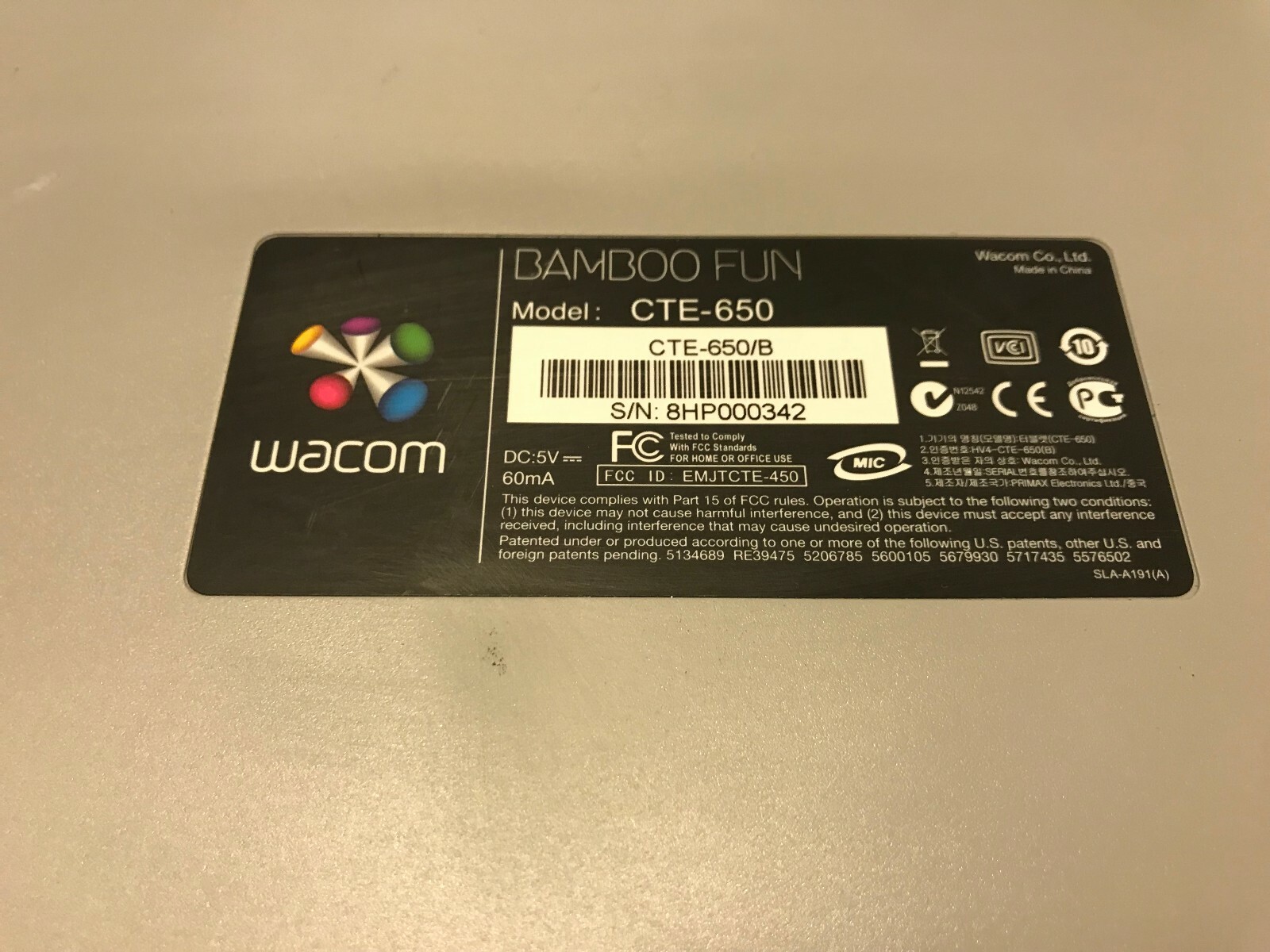 Wacom CTE-650 Bamboo Fun Graphic Writing Tablet with Mouse NO PEN
