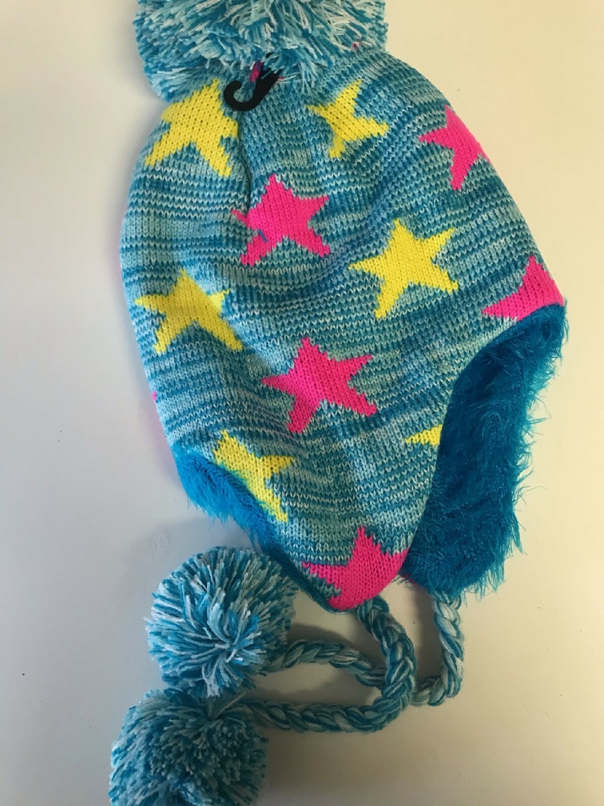 Girl's Winter Pom Pom Star Knit Winter Hat One Size Child 4-16 Retail 22.00