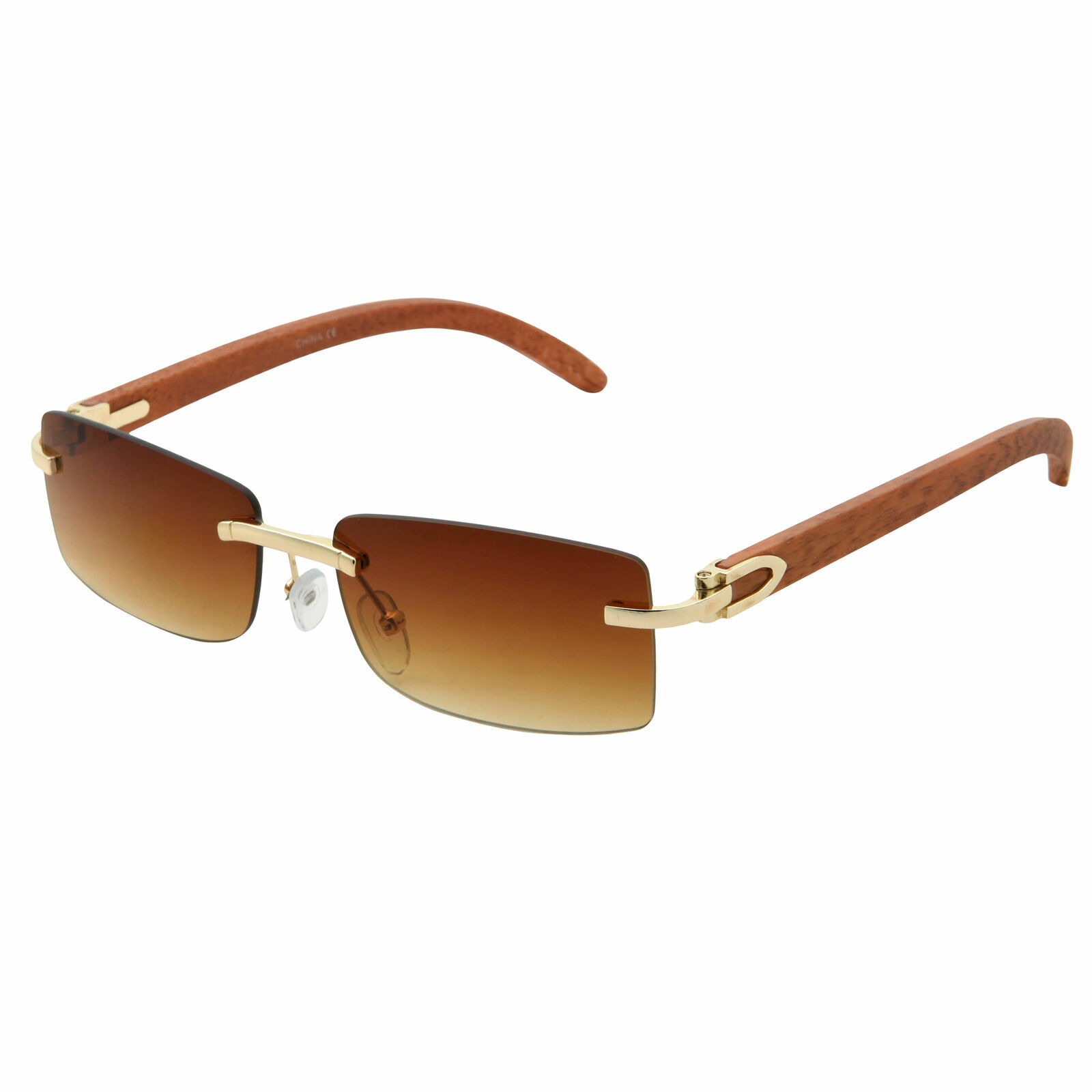 Mens CLASSY Style Wood Buff Retro 90s Hip Hop Rapper Gangster Rimless Sunglasses