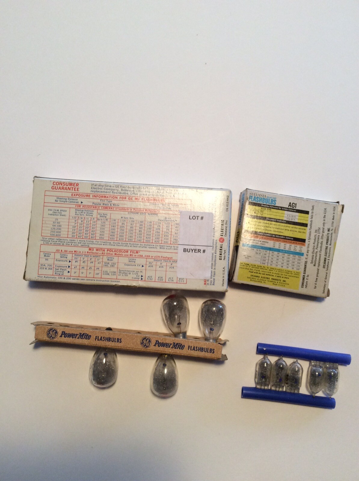 Vtg Sylvania Blue Dot Flash Bulbs AG1 Pkg 12 Have 5 . General Elec M3 Bulbs 4