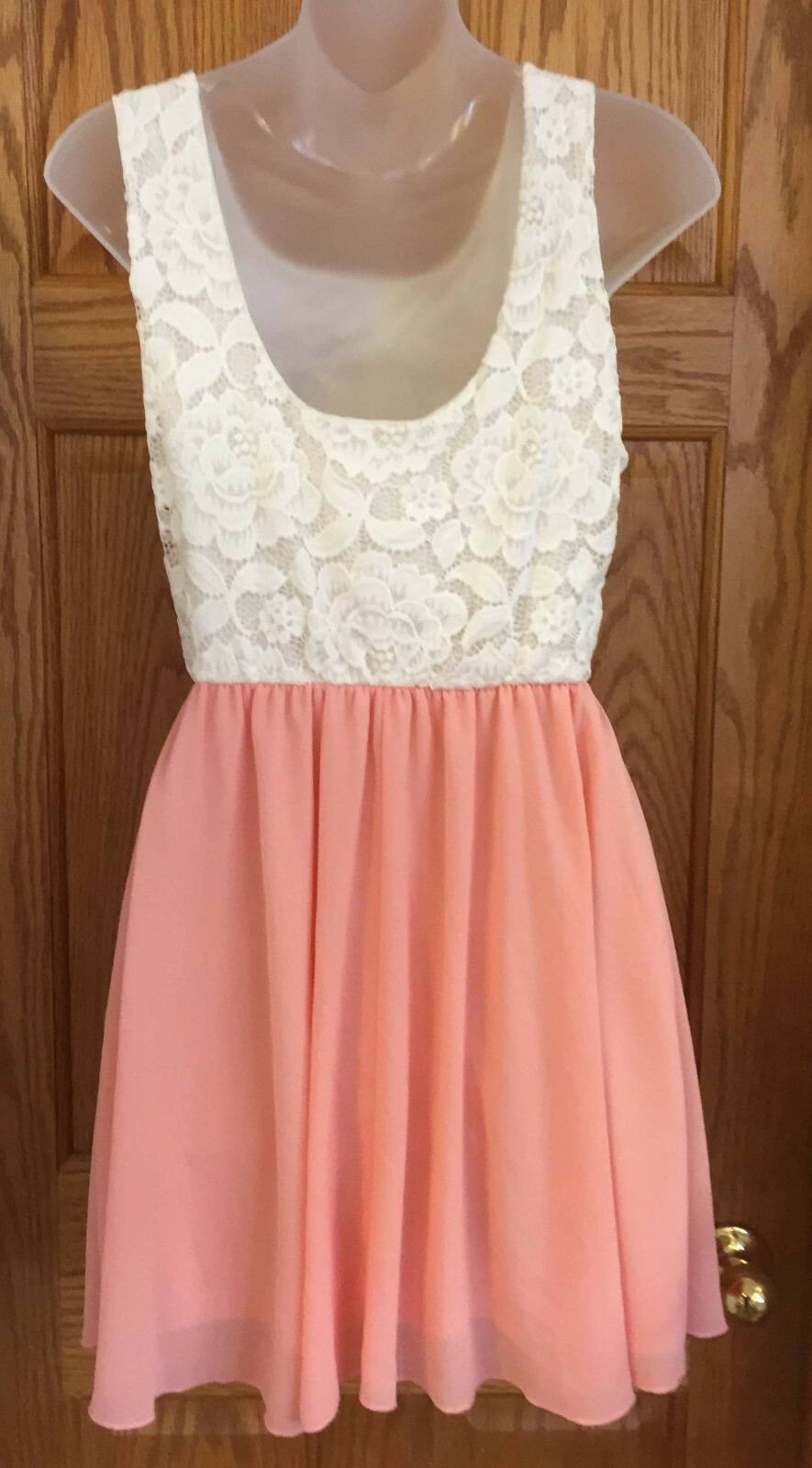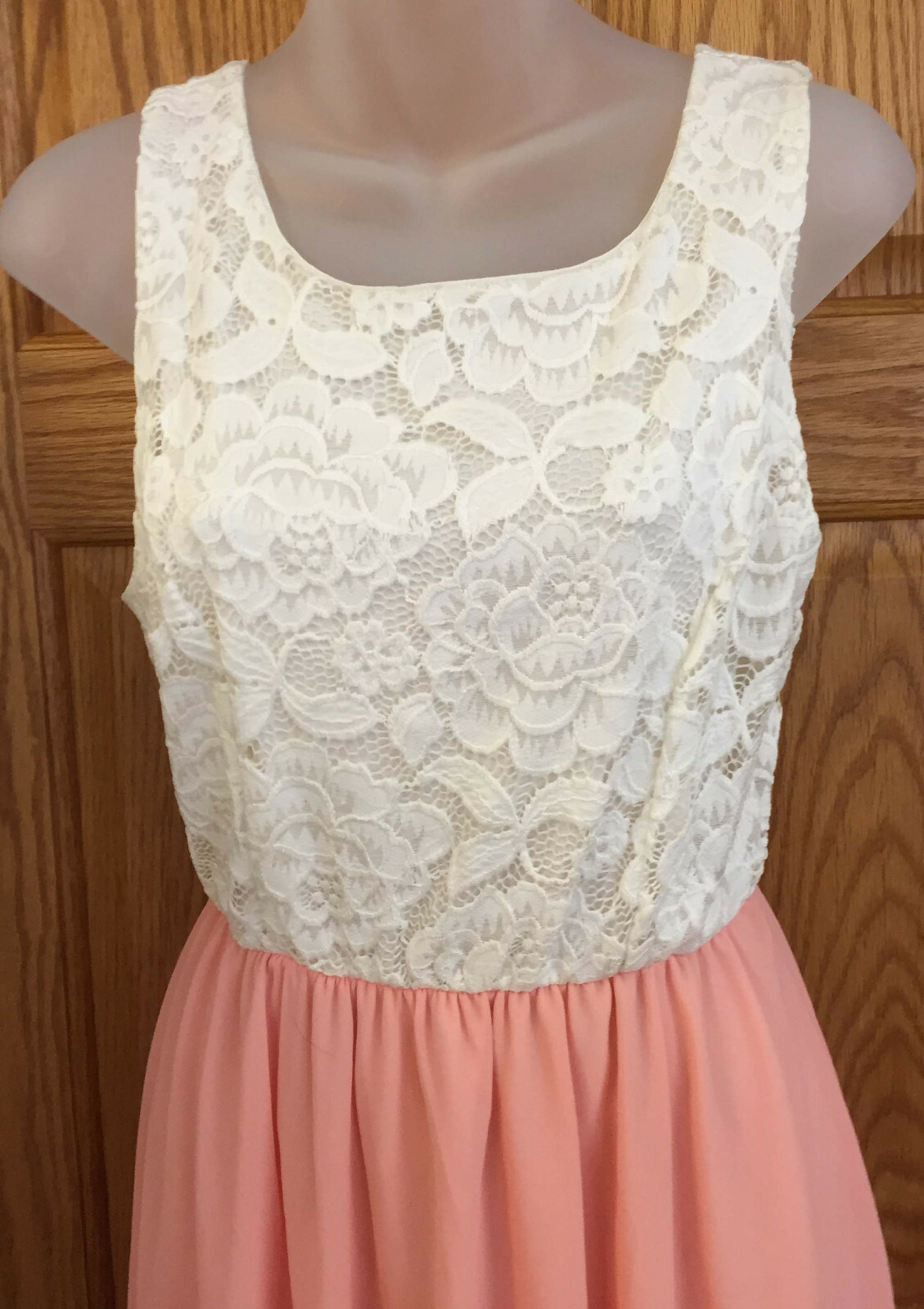 как выглядит Dance Dress for Girls Costume Peach Chiffon Skirt White Lace Top Size Large фото