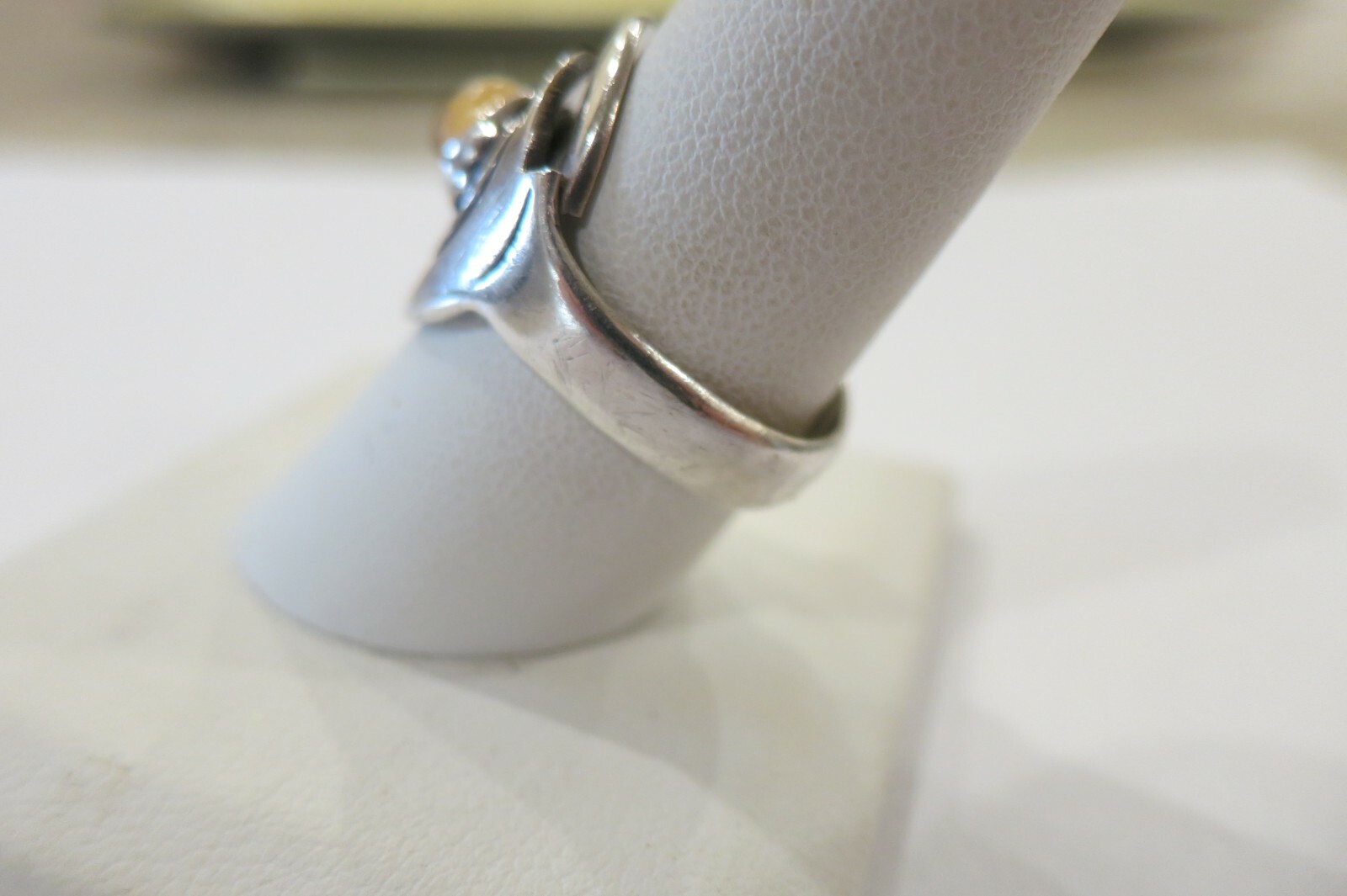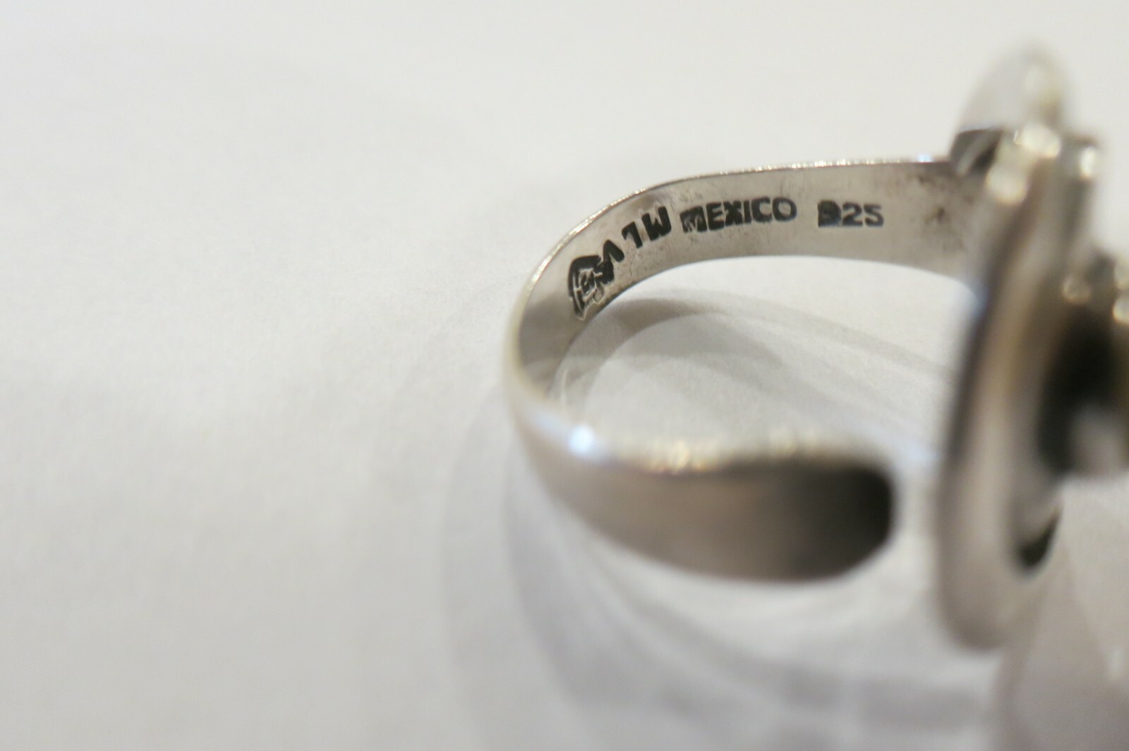 как выглядит VINTAGE 925 Sterling silver AMBER ring .SIZE 8 Signed MLV фото