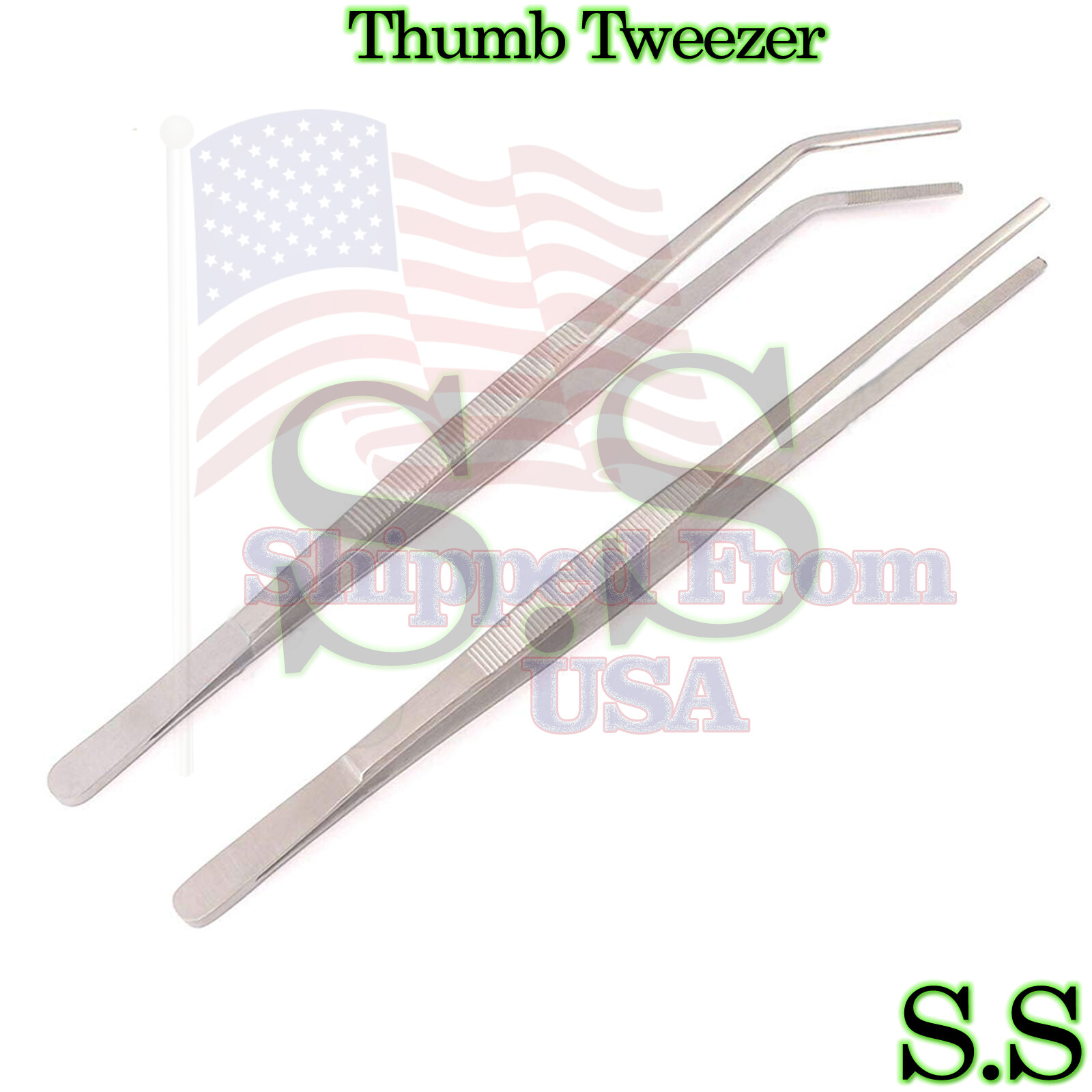 New 2 Pcs 12 30cm Reptile Feeding Tongs Tweezers Curved Stainless Steel