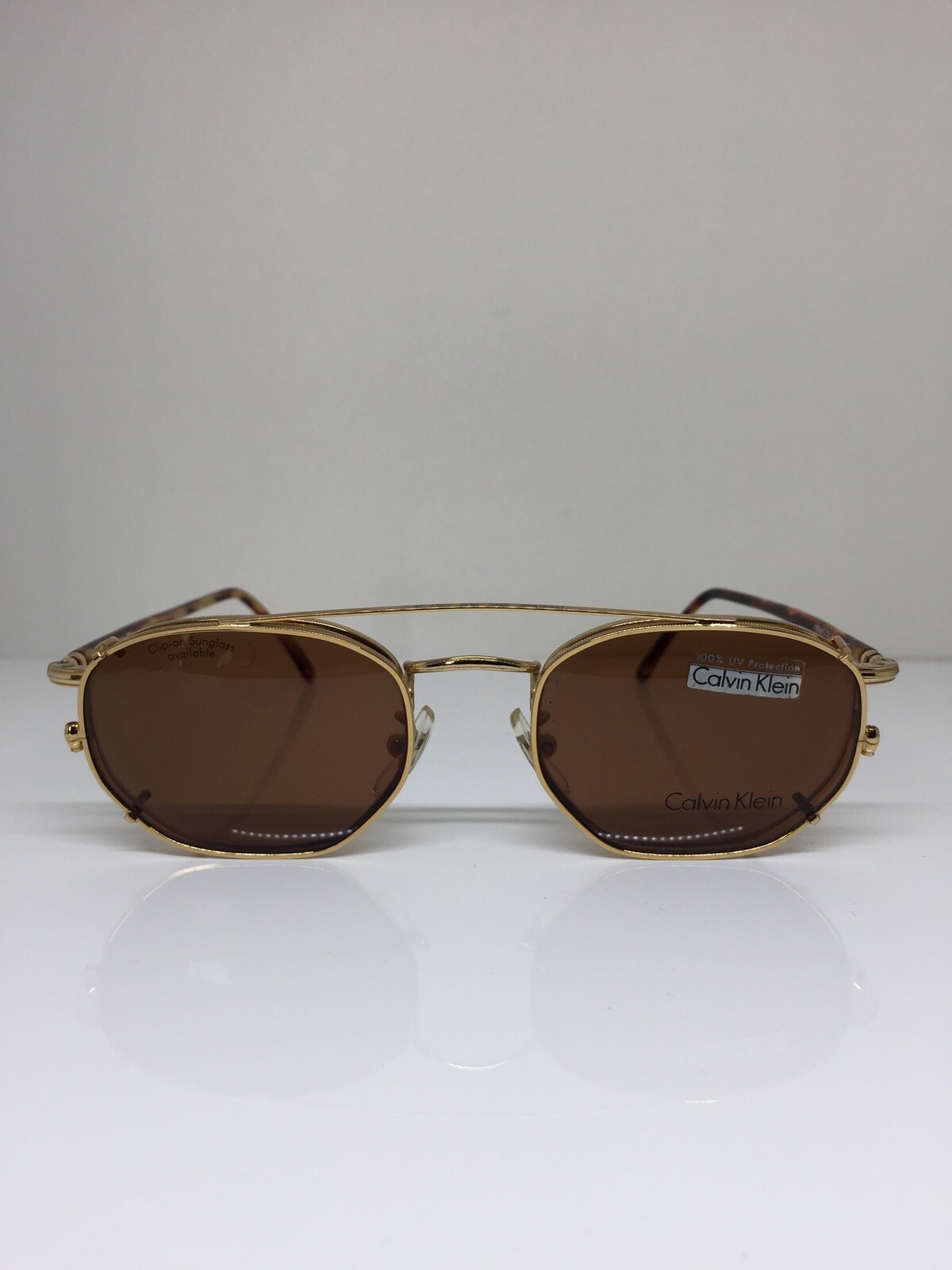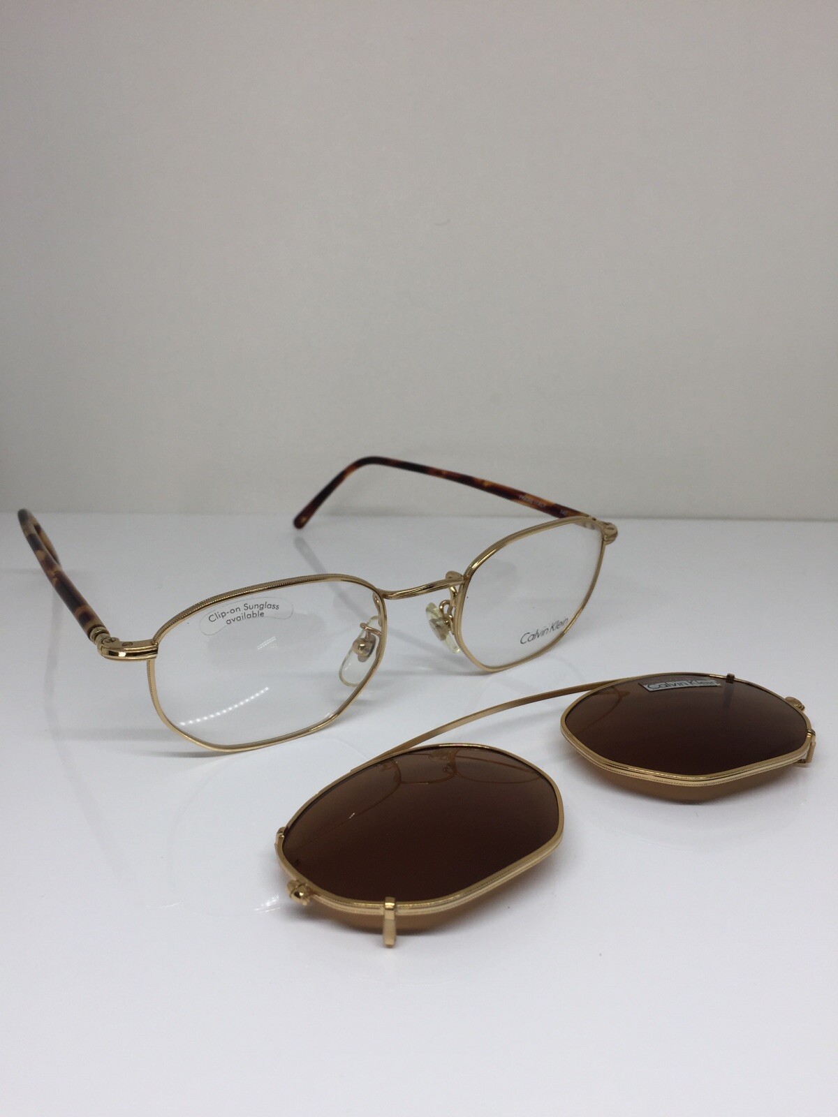 как выглядит New VINTAGE CALVIN KLEIN Eyeglasses CK 232 Gold With Sun Clip On 48-20mm Italy фото