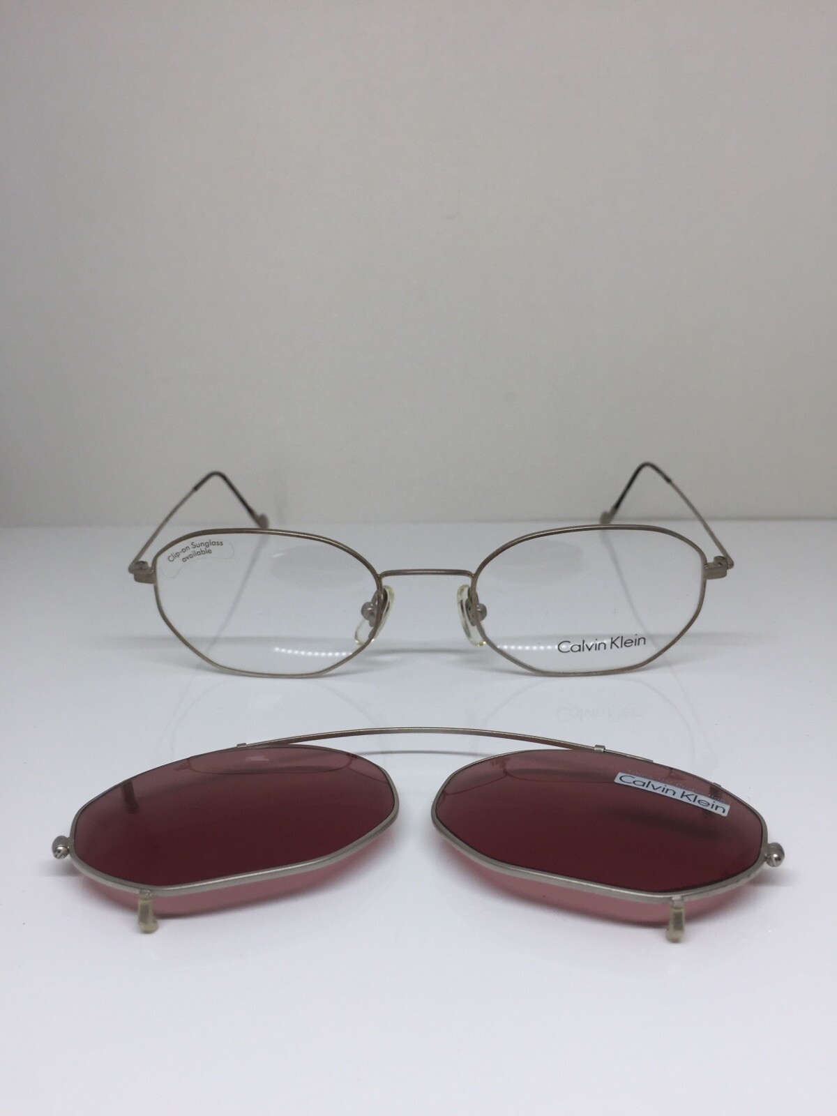 New VINTAGE CALVIN KLEIN Eyeglasses CK 138 Silver With Sun Clip On 48-19mm Japan