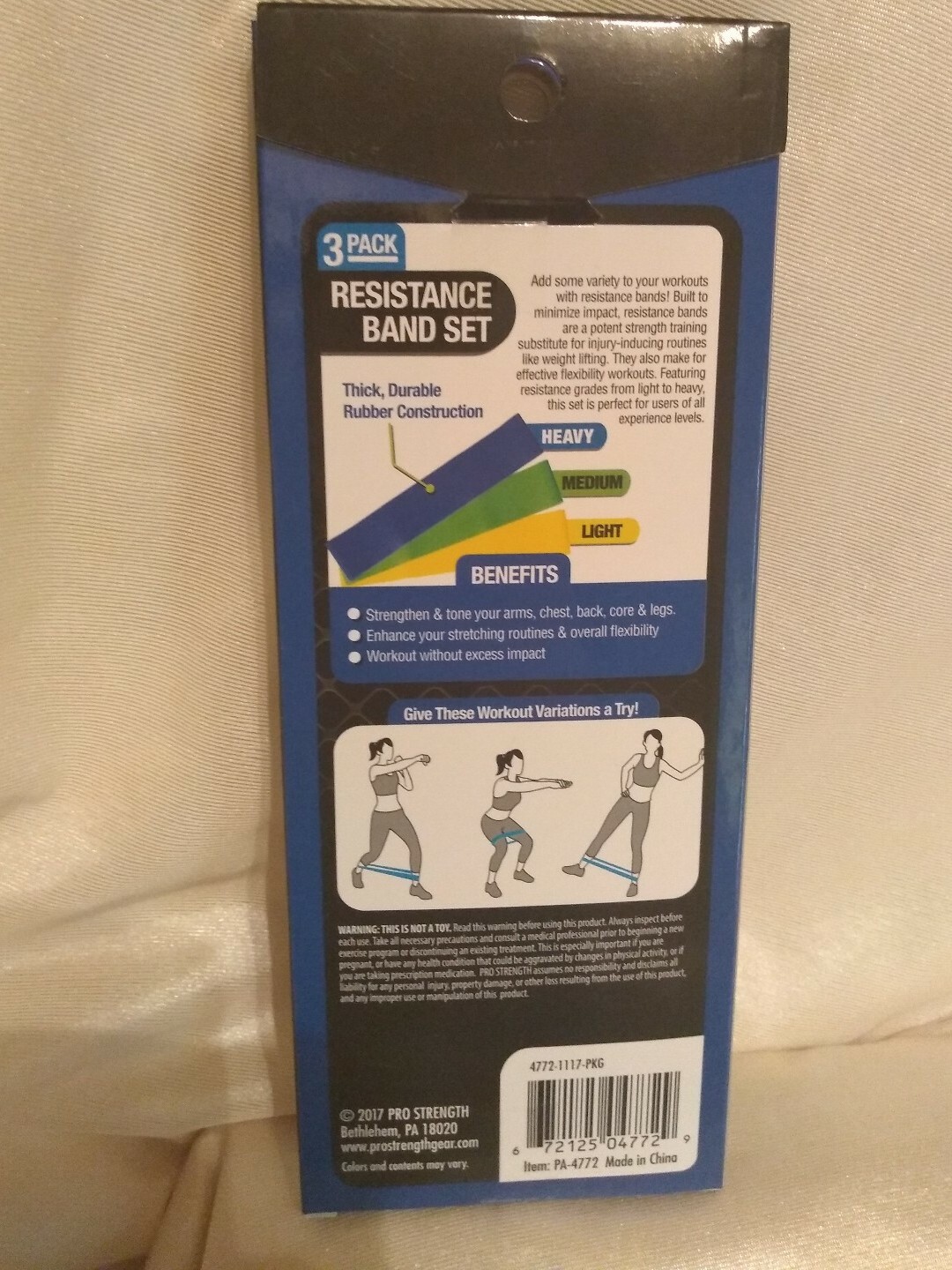 Pro Strength Resistance Band Set 3 Pack Light, Medium, Heavy Body Sculpting New