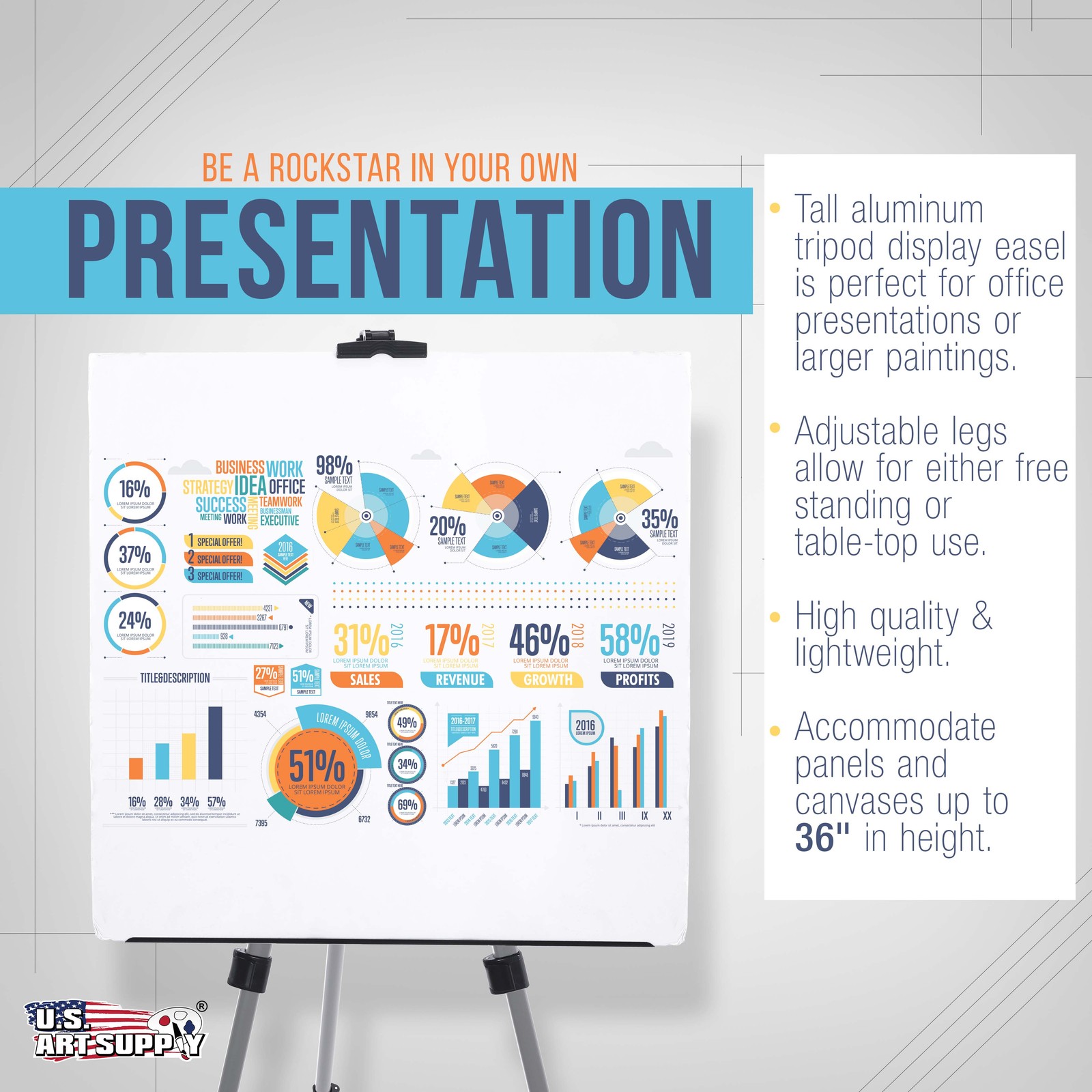 66 Silver Aluminum Adjustable Artist Field Display Easel Tripod Stand, Tabletop