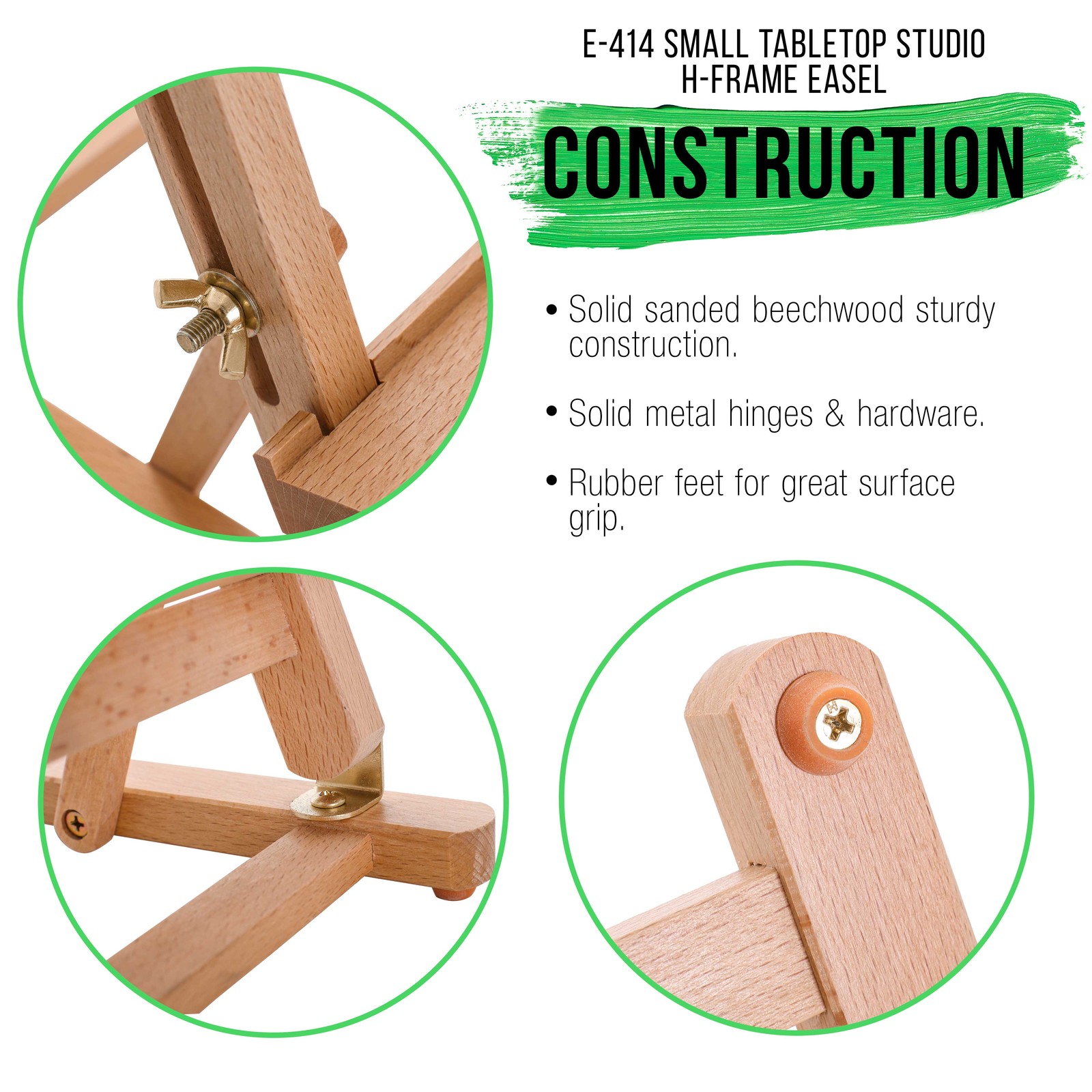 U.S. Art Supply Small Tabletop Wooden H-Frame Studio Easel, Adjustable Beechwood