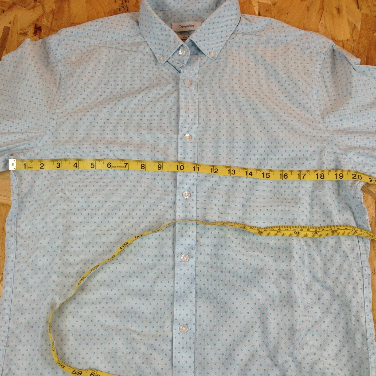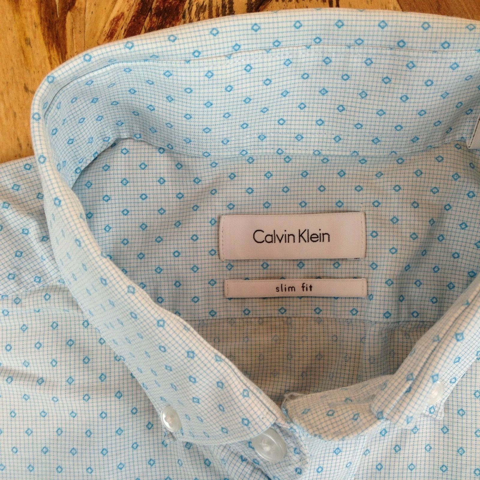 как выглядит CALVIN KLEIN Full Button Slim Fit Button-Collar Blue Dress Shirt Mens Size M фото