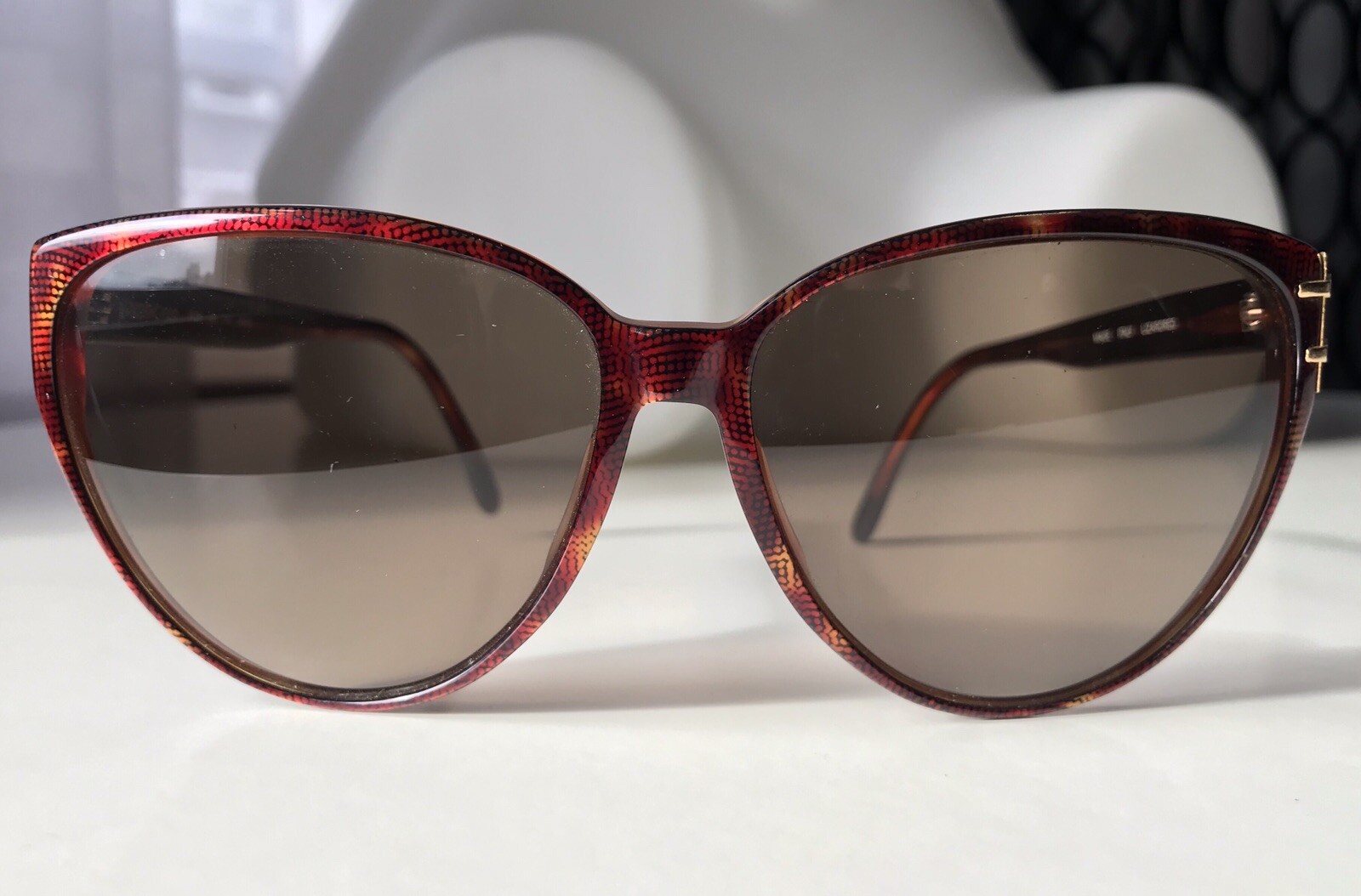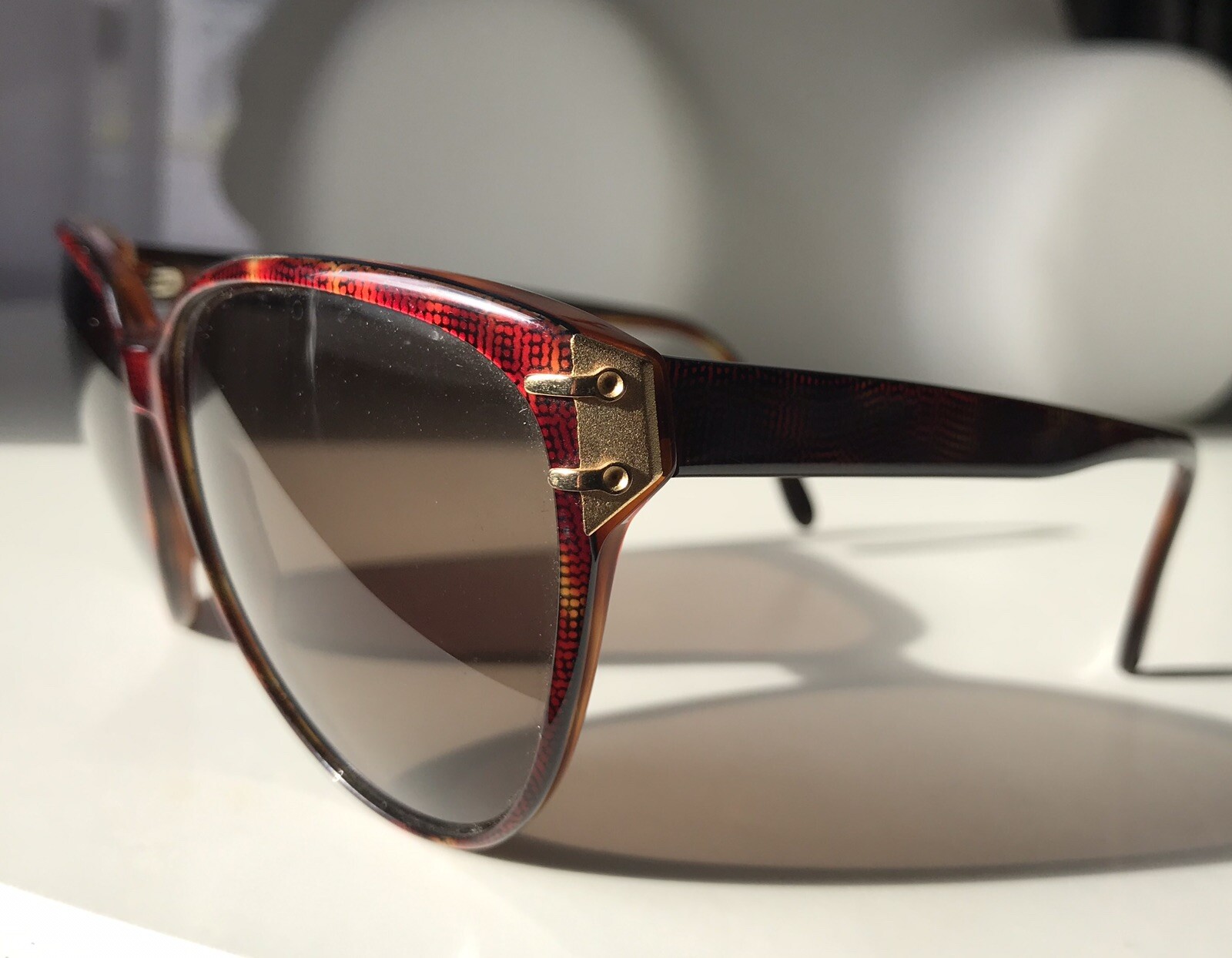 как выглядит Luxottica Sunglasses 1436 Made in Italy Lizard Red Butterfly Style RARE Frames фото