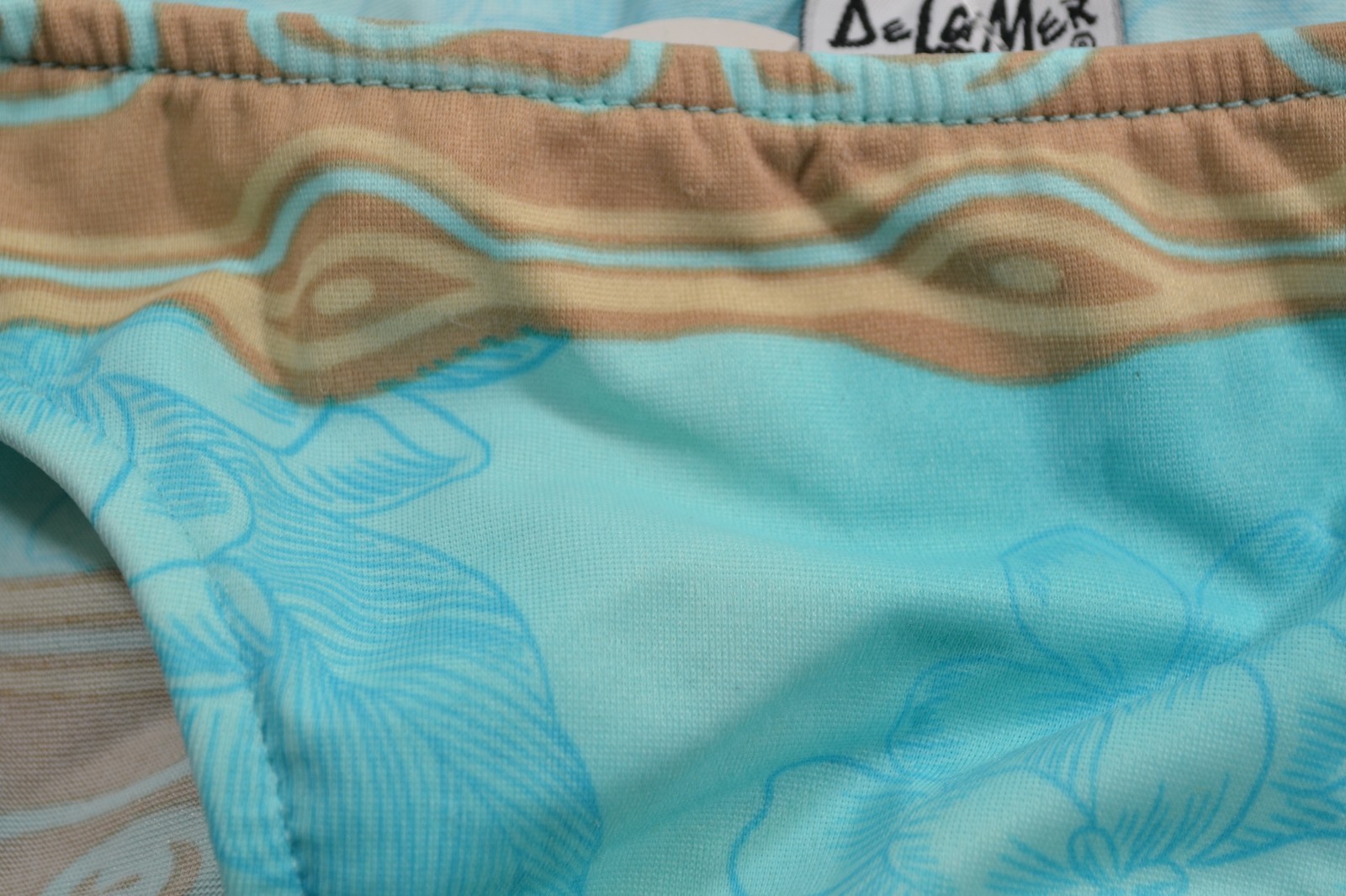 как выглядит De La Mer AT LOW RISE Blue Tan Striped Swirl Flower Swim Junior