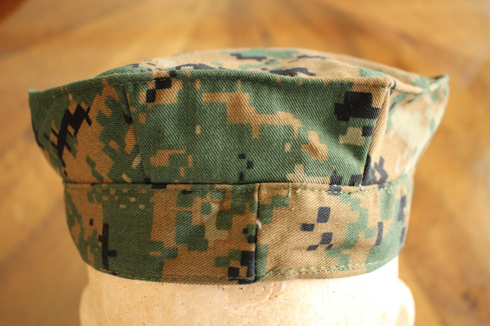 • USMC USN FLEET MARINE CORPS WOODLAND MARPAT CAMO 8 POINT COVER HAT CAP SZ. 7 1/4