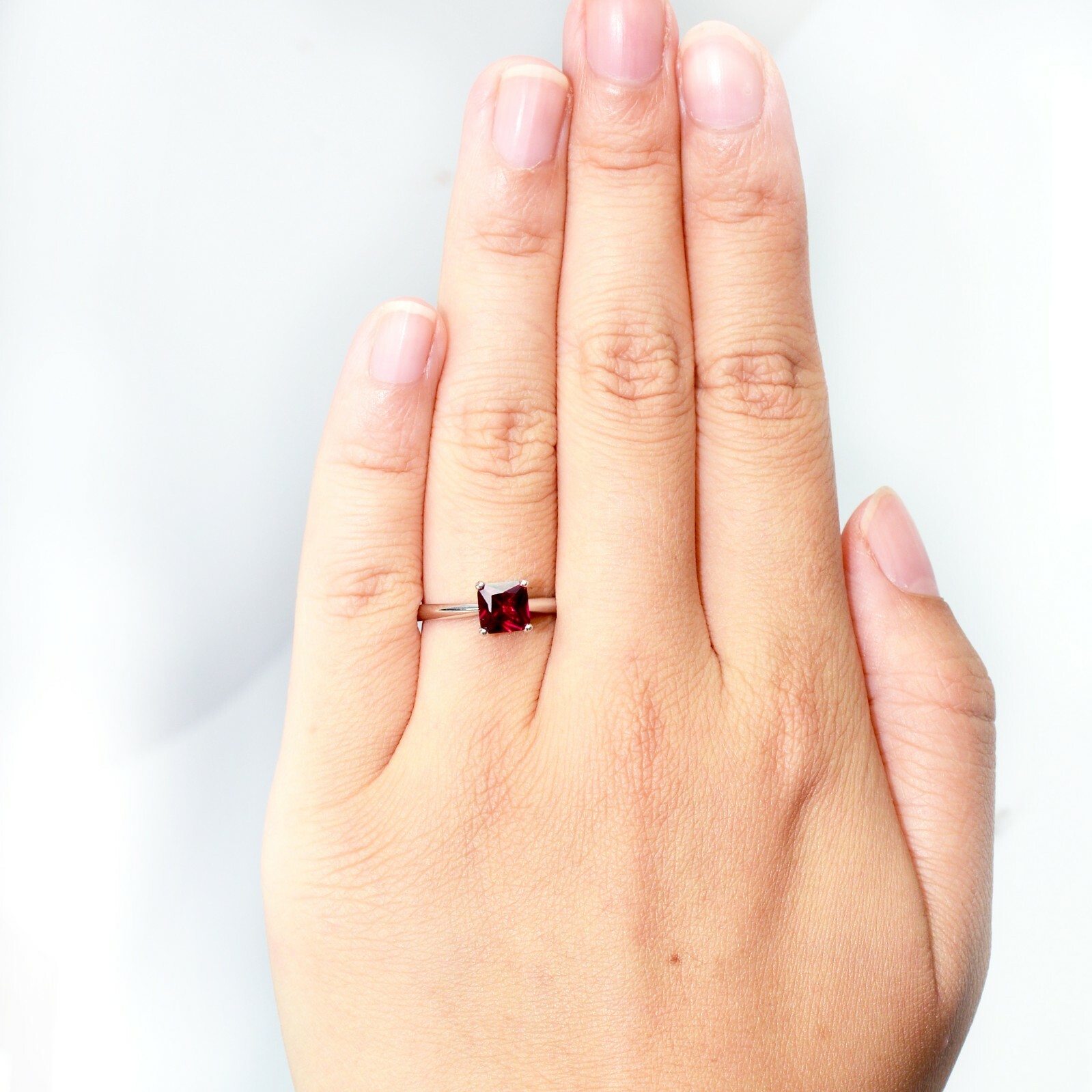Solitaire Square Red Ruby 925 Sterling Silver Engagement Ring