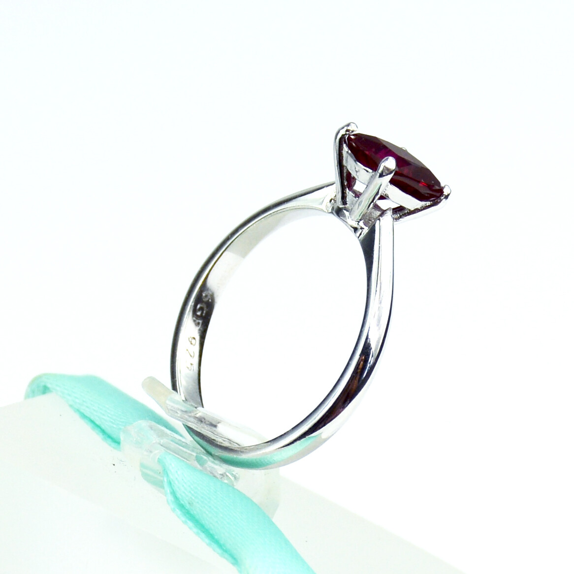как выглядит Solitaire Square Red Ruby 925 Sterling Silver Engagement Ring фото