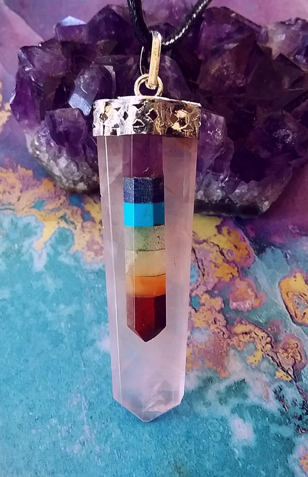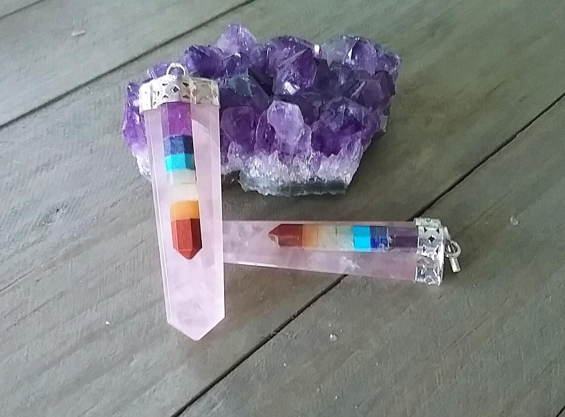CHAKRA PENDANT, ROSE QUARTZ PENDANT With CHAKRA CRYSTALS, CRYSTAL CHAKRA PENDANT