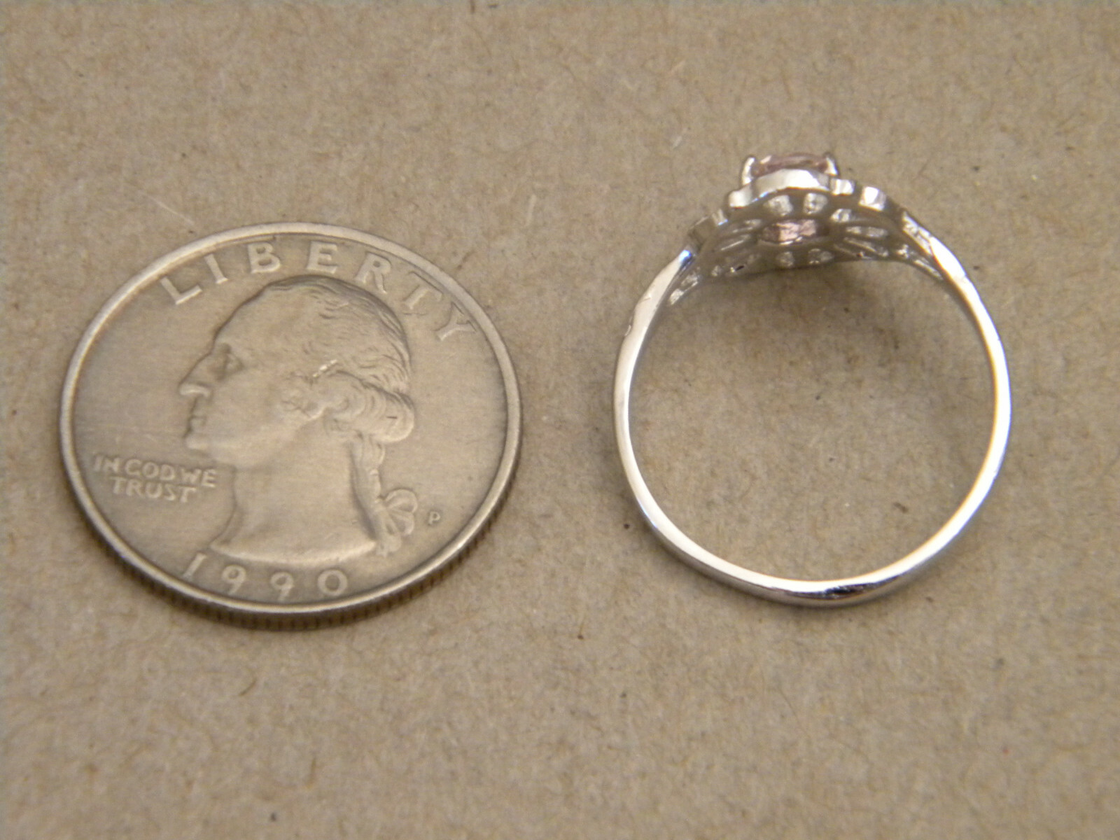 Lady's Girl's Rhodium Plated Size 7 Pink Round CZ Solitaire Ring
