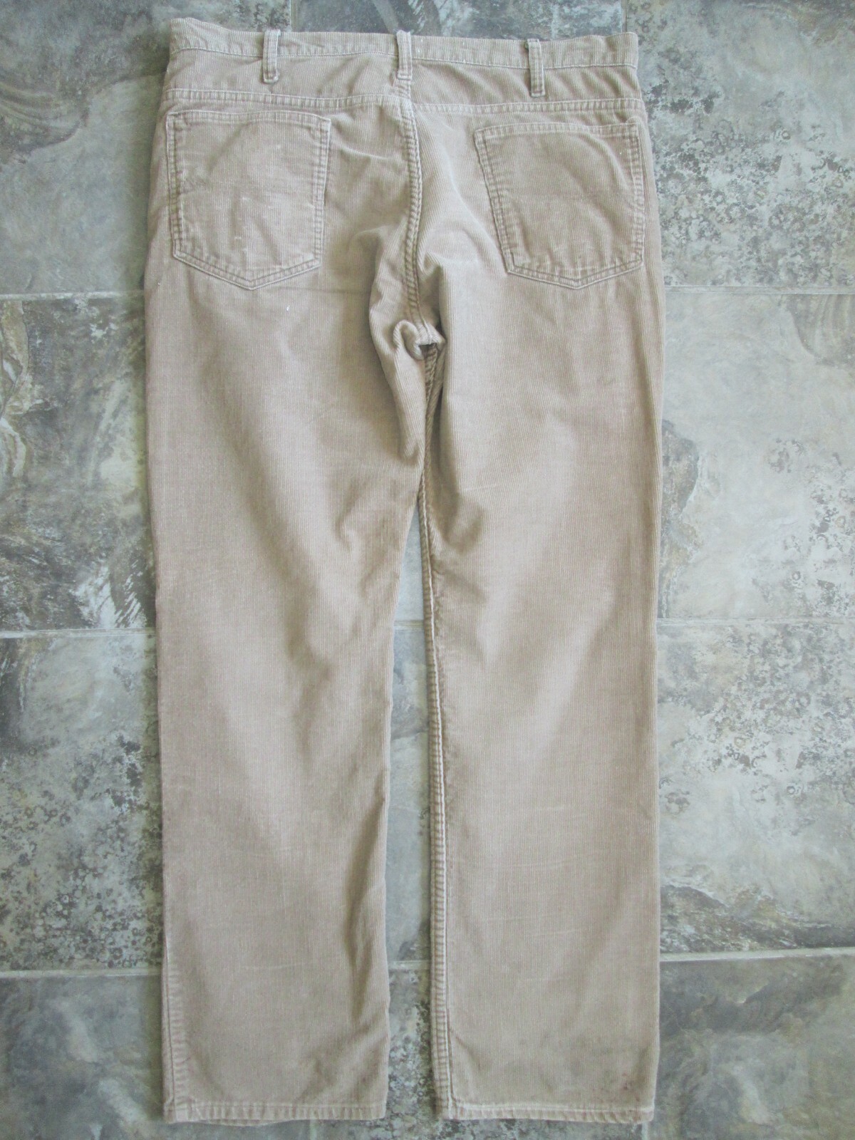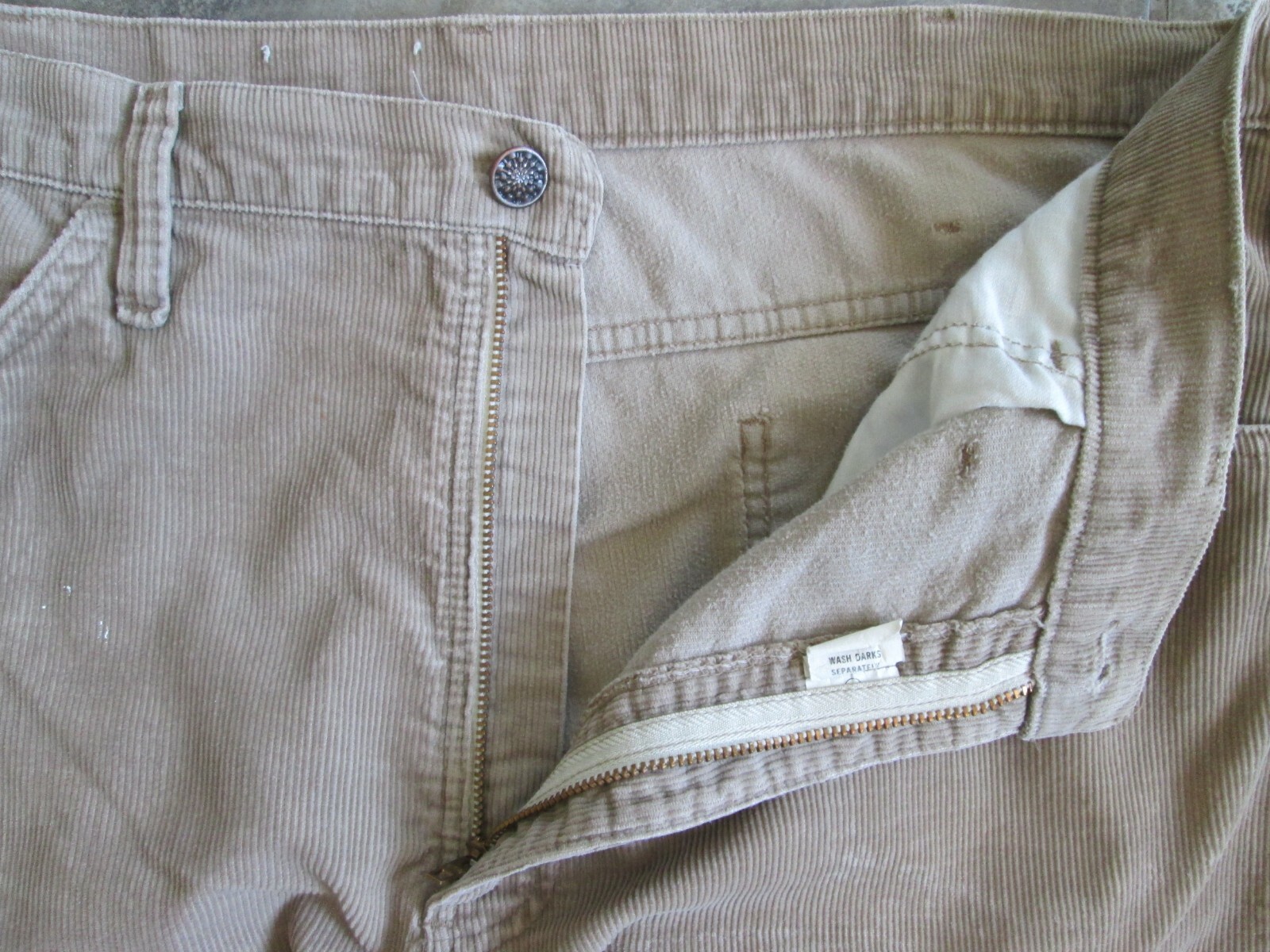 VTG Original Distressed Pants 38x31 Corduroy Khaki Tan Slight Tapered Leg Hippy