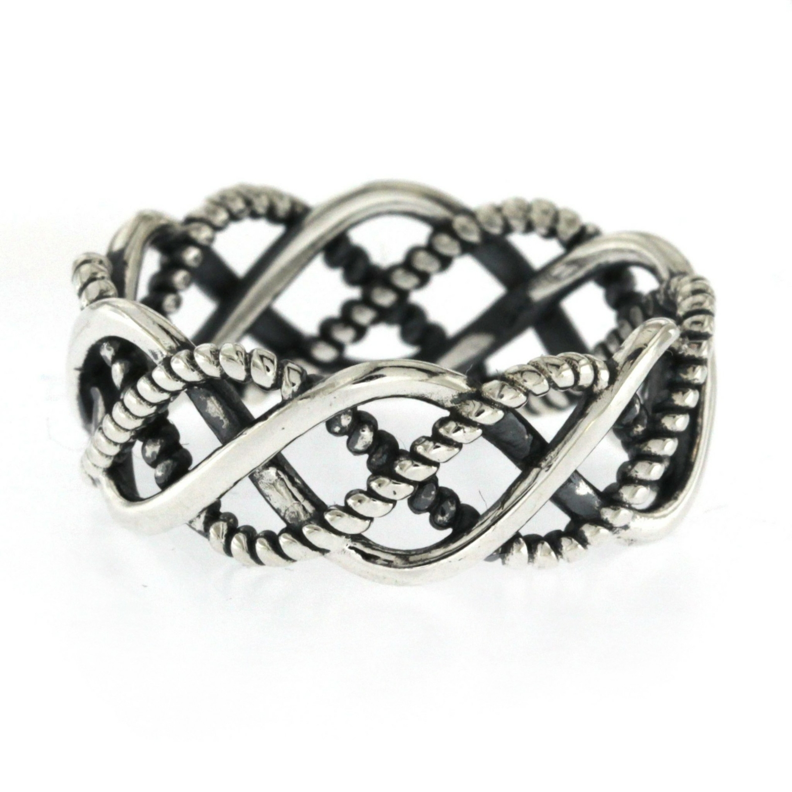 как выглядит Unisex 925 Sterling Silver Open Woven Braid Wedding Band Ring 5-12 фото