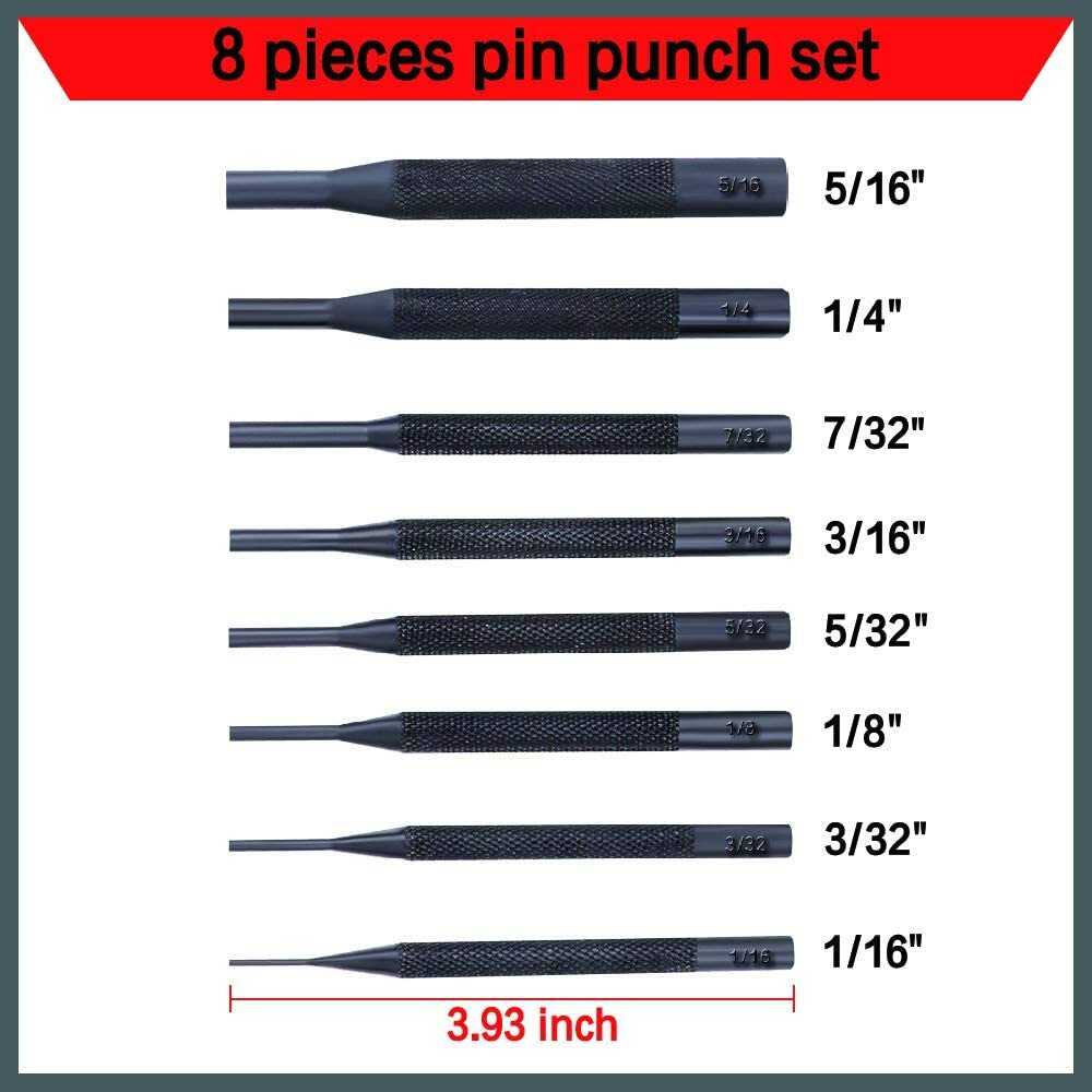 8 Pcs Forged Steel Pin Punch Set in Roll Up Case Rifle Gunsmithing Jewelers Auto
