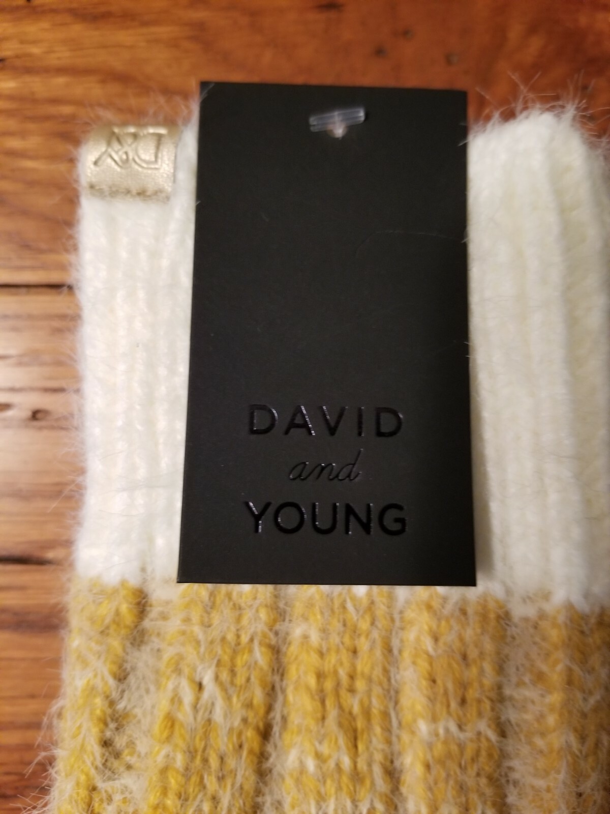 как выглядит NWT Womens David And Young Ribbed Knit Mittens Mustard Yellow White OS фото