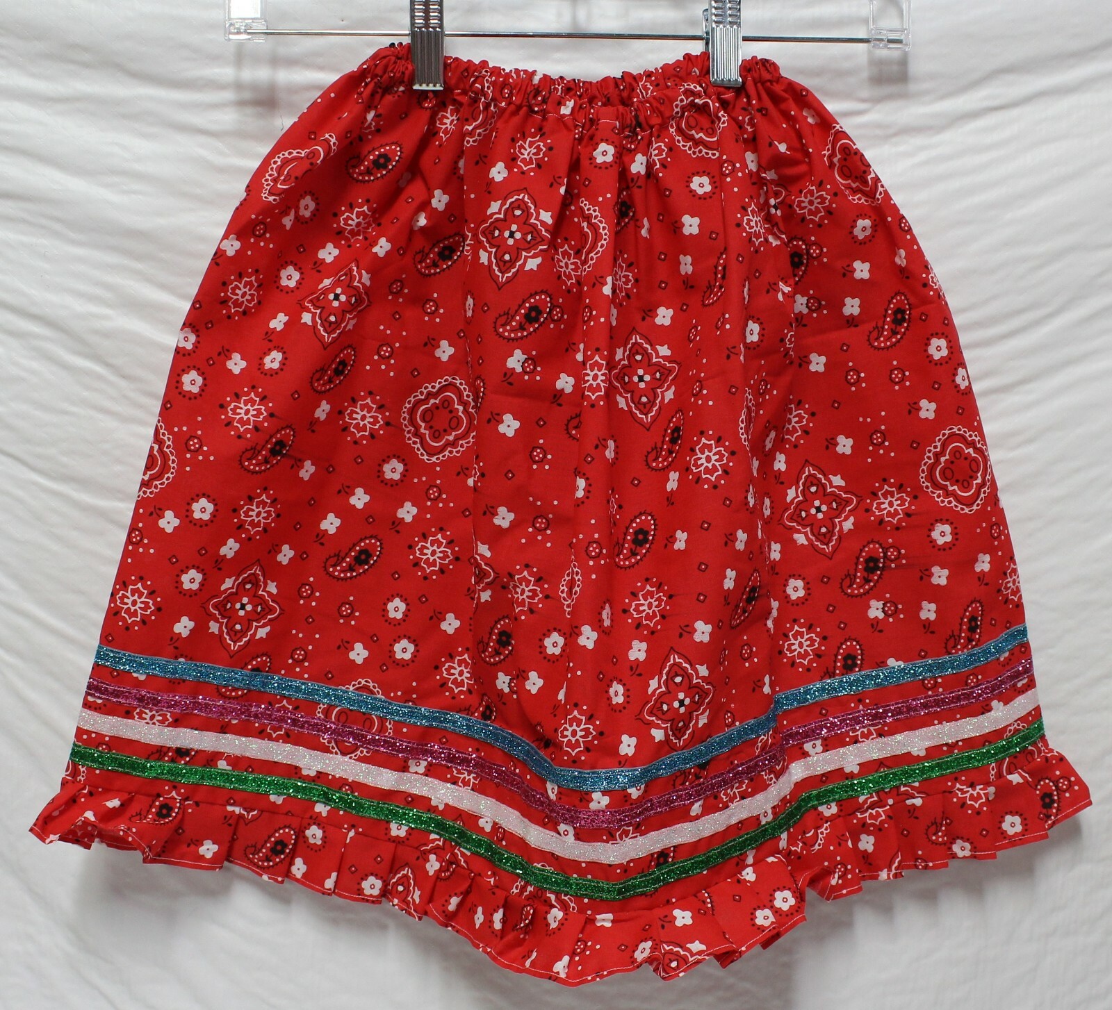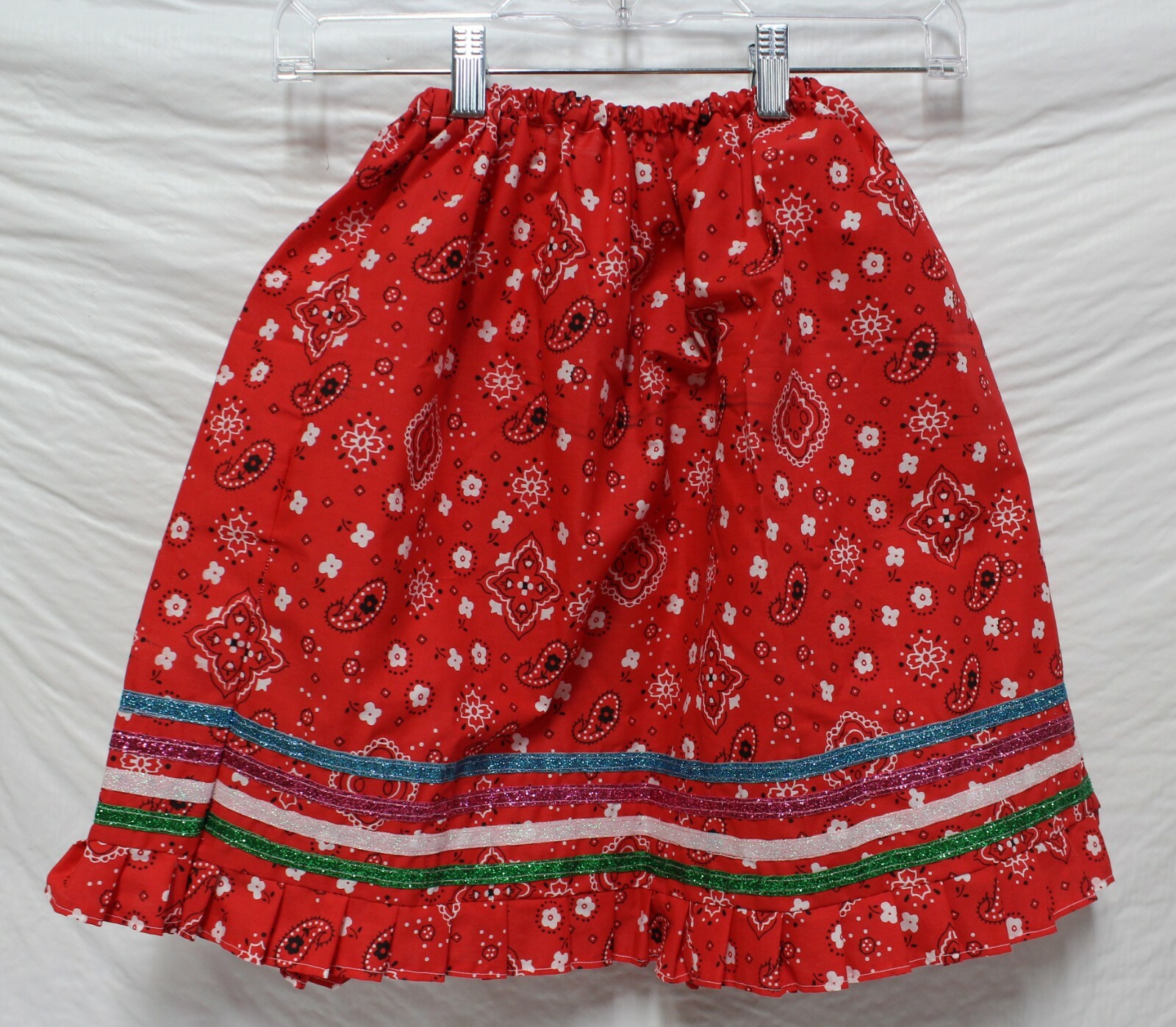 New Native American Seminole Girls Handmade Red Handkerchief Ribbon Skirt Sz Lg