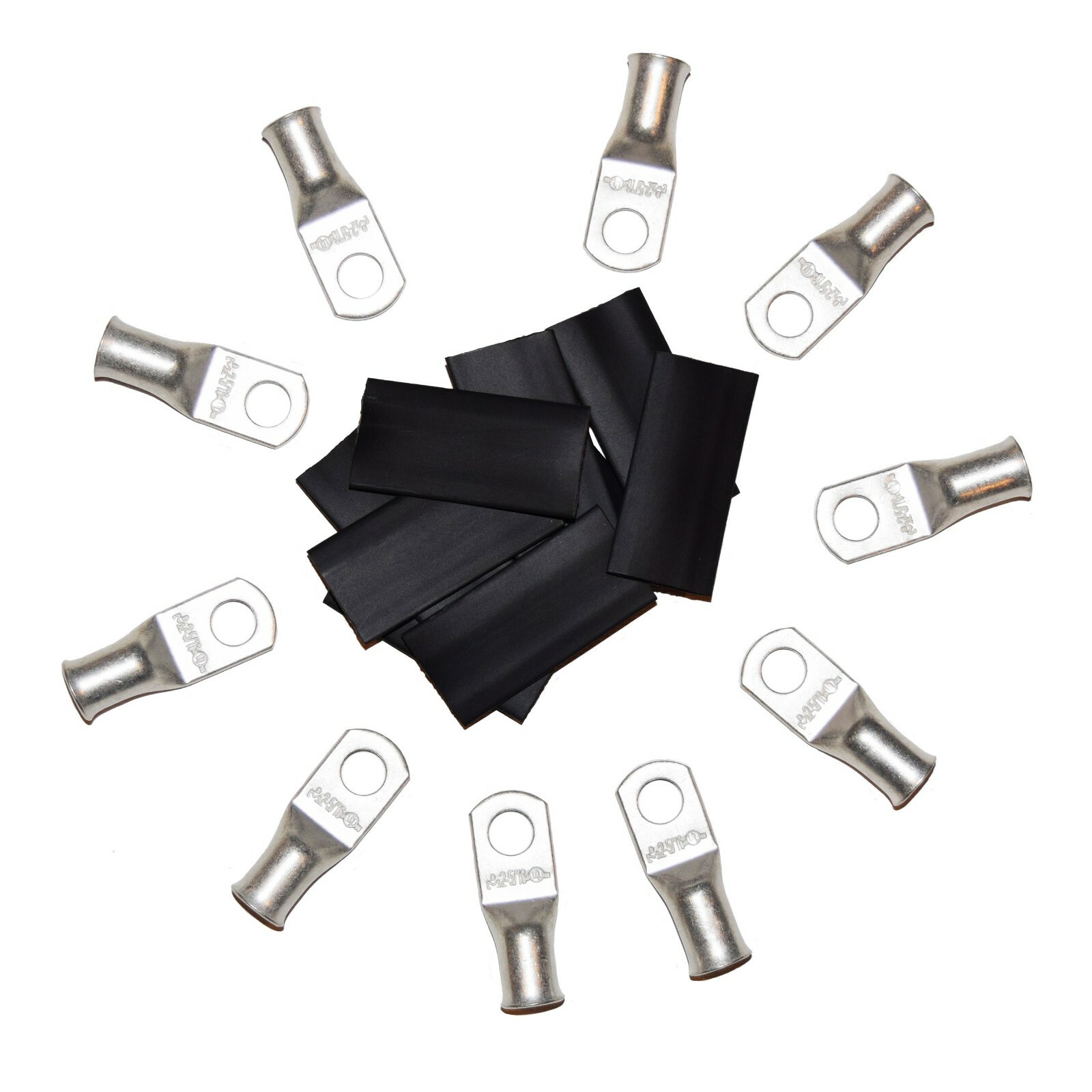 10 2 AWG Lugs Battery Cable End Ring 5/16 Hole Tin Plated Copper Heat Shrink