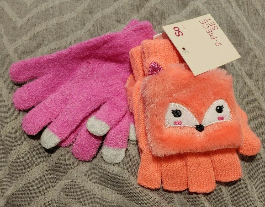 NWT SO Girls 2 Glove Set Cold Weather Coral/Berry -2382