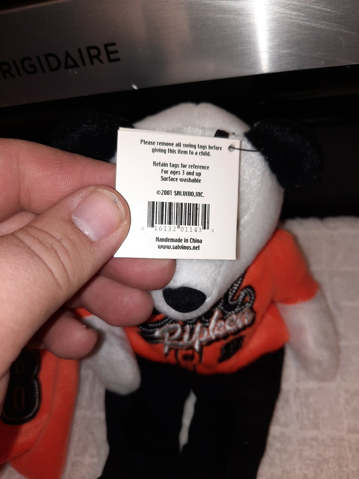 как выглядит CAL RIPKEN JR Orioles 2001 Salvino Summer Heroes Bear with Logo Bag 1of5000 made фото