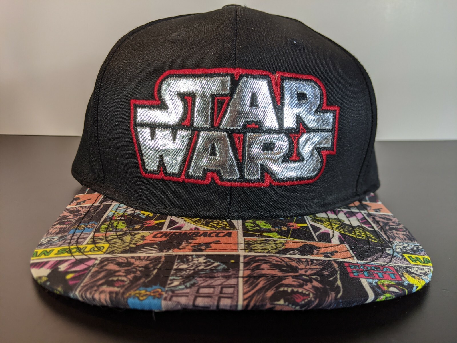 Star Wars Chrome Logo Comic Print Brim Snapback Hat Youth Size
