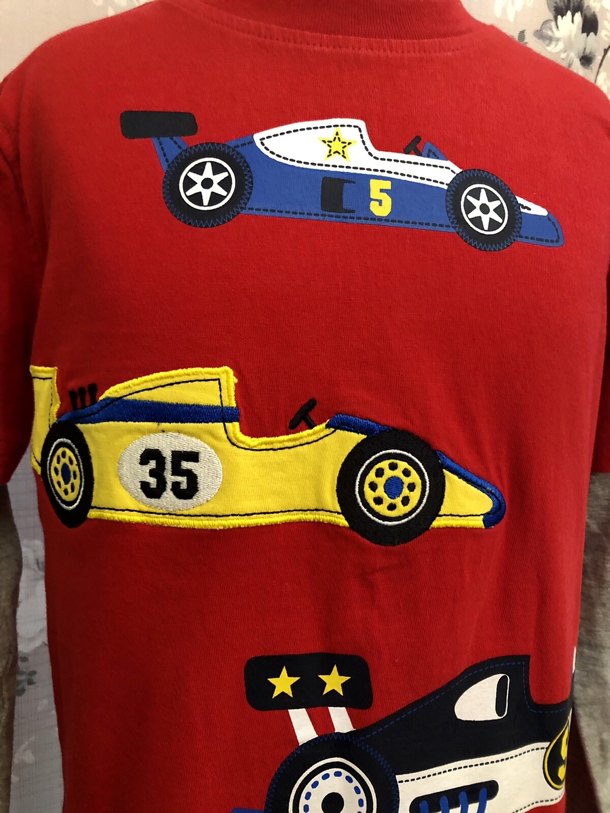 как выглядит Kids Headquarters Boys 6 Red Long Sleeve Race Cars And Jogger Jeans Outfit Set фото