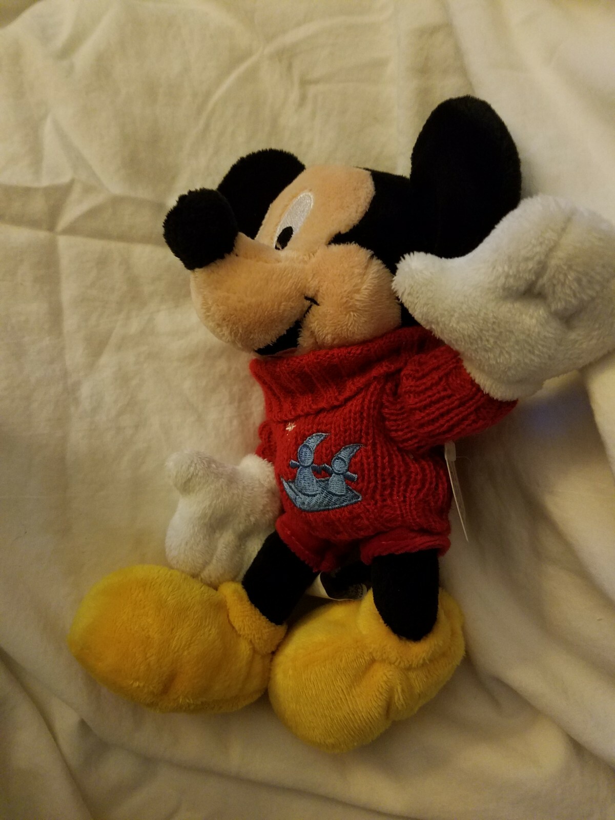 Disney Holiday Mickey Mouse wearing a Red Sweater Bean Bag Plush MWT