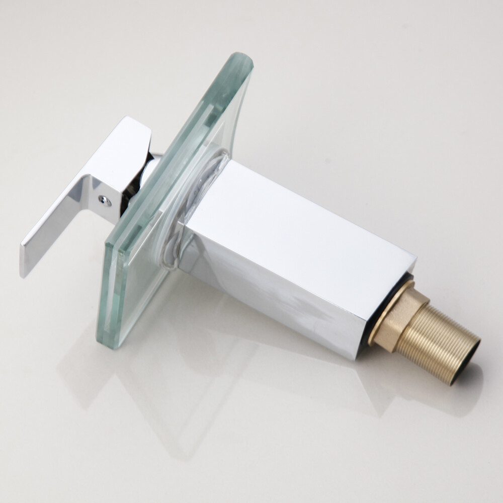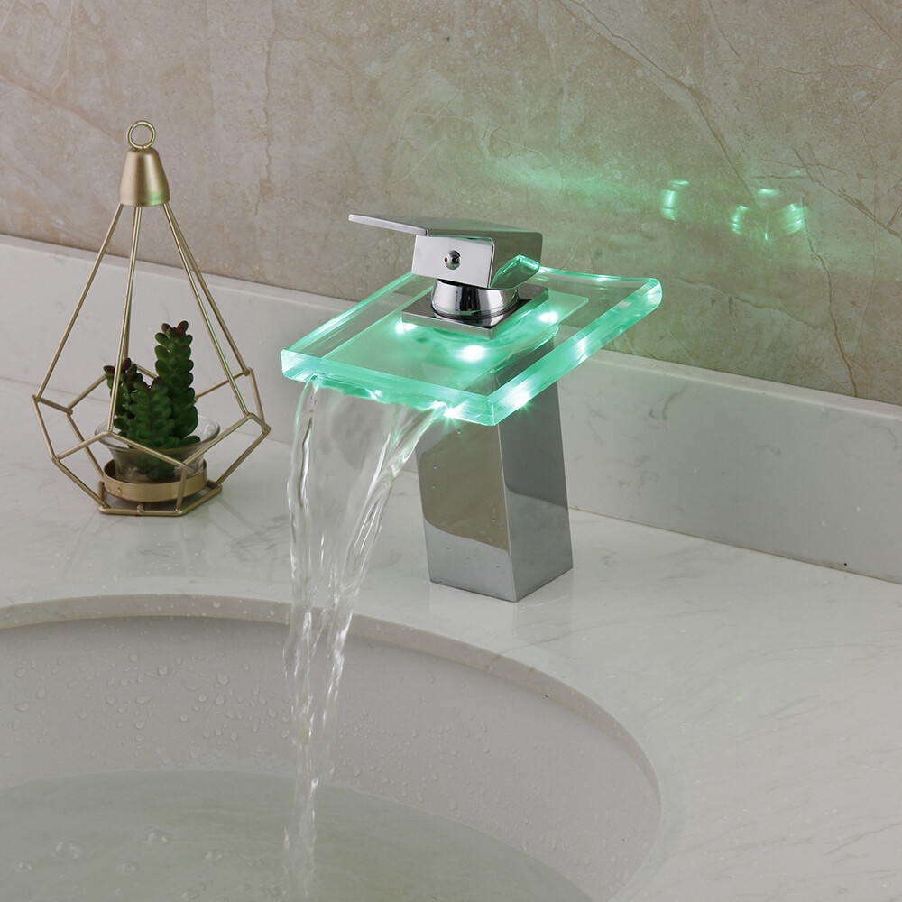 Battery LED Waterfall Glass Spout Bathroom Basin Sink Mixer Faucet Chrome Taps