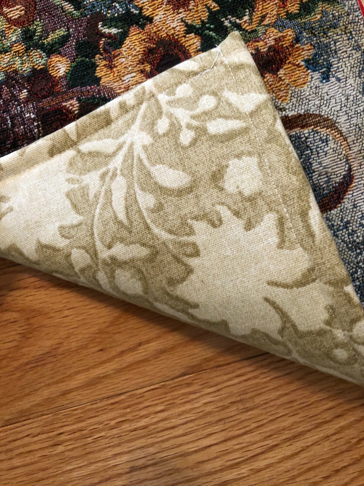 как выглядит Table Topper wall decor tapestry flowers 17x 11.5, trim, liner on the back, new фото