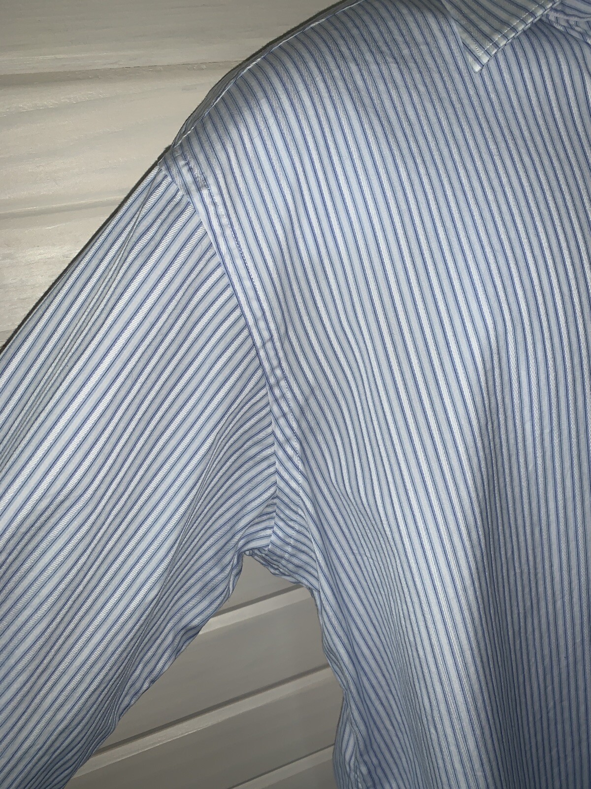 как выглядит Tommy Bahama Sz 16 32/33 100 Cotton Blue White Striped Dress Shirt EUC фото