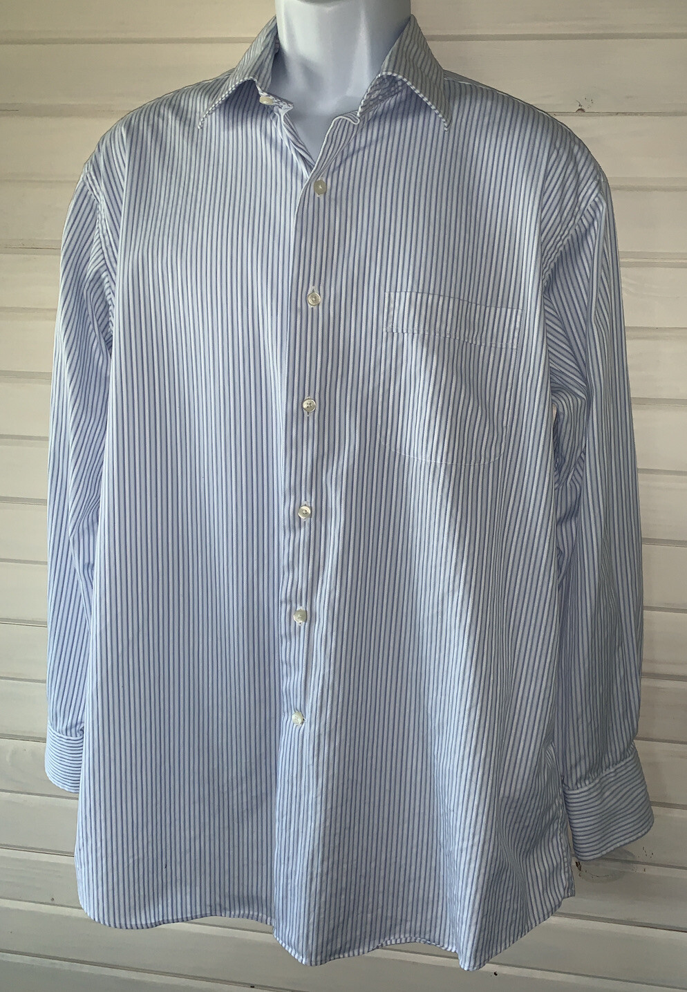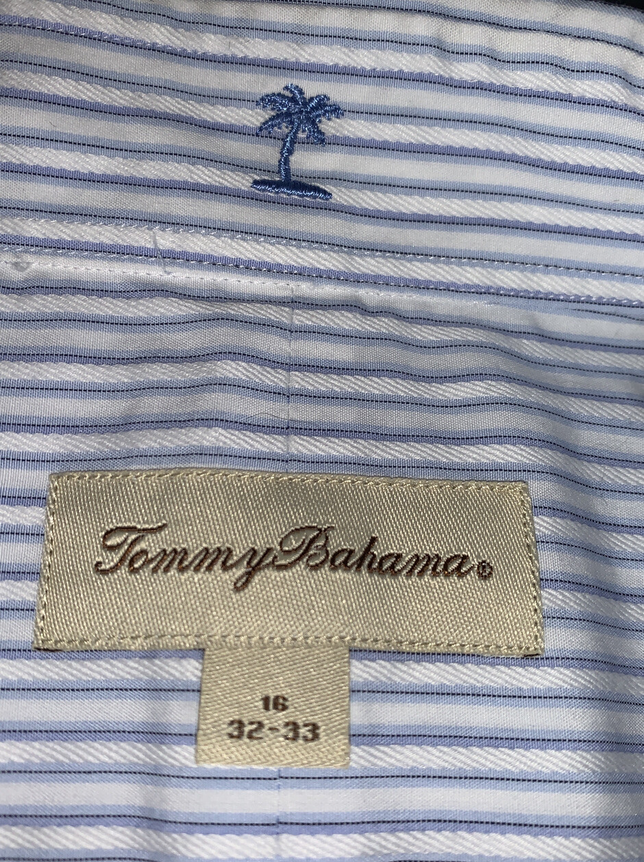 Tommy Bahama Sz 16 32/33 100 Cotton Blue White Striped Dress Shirt EUC